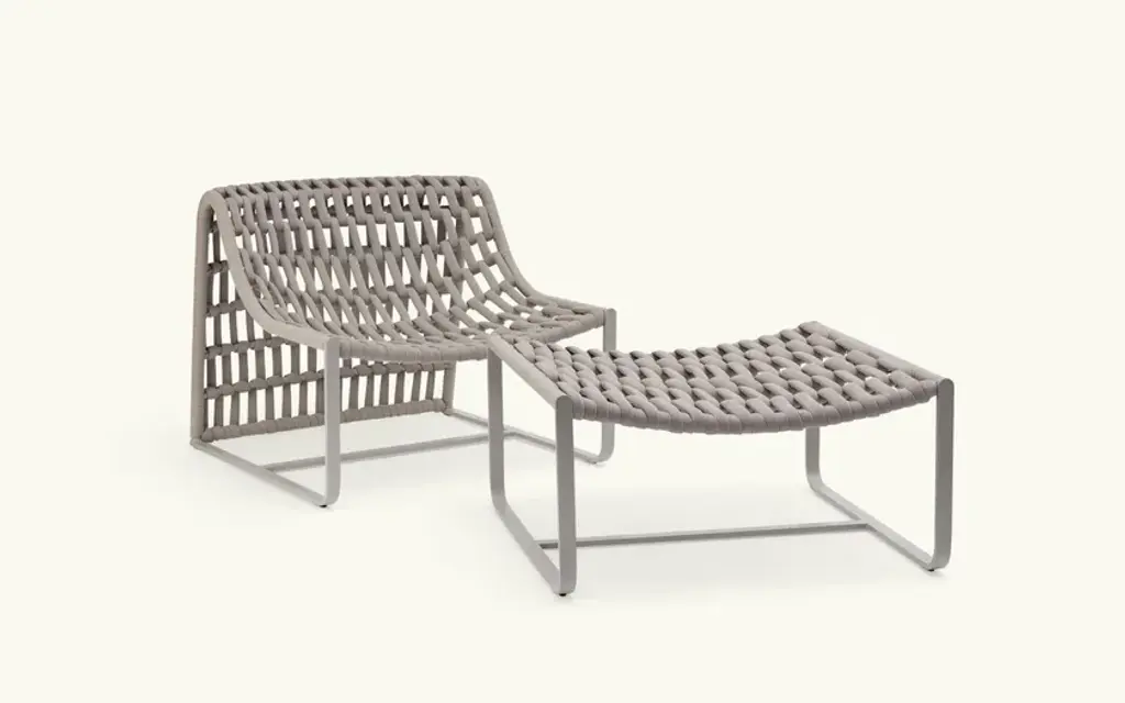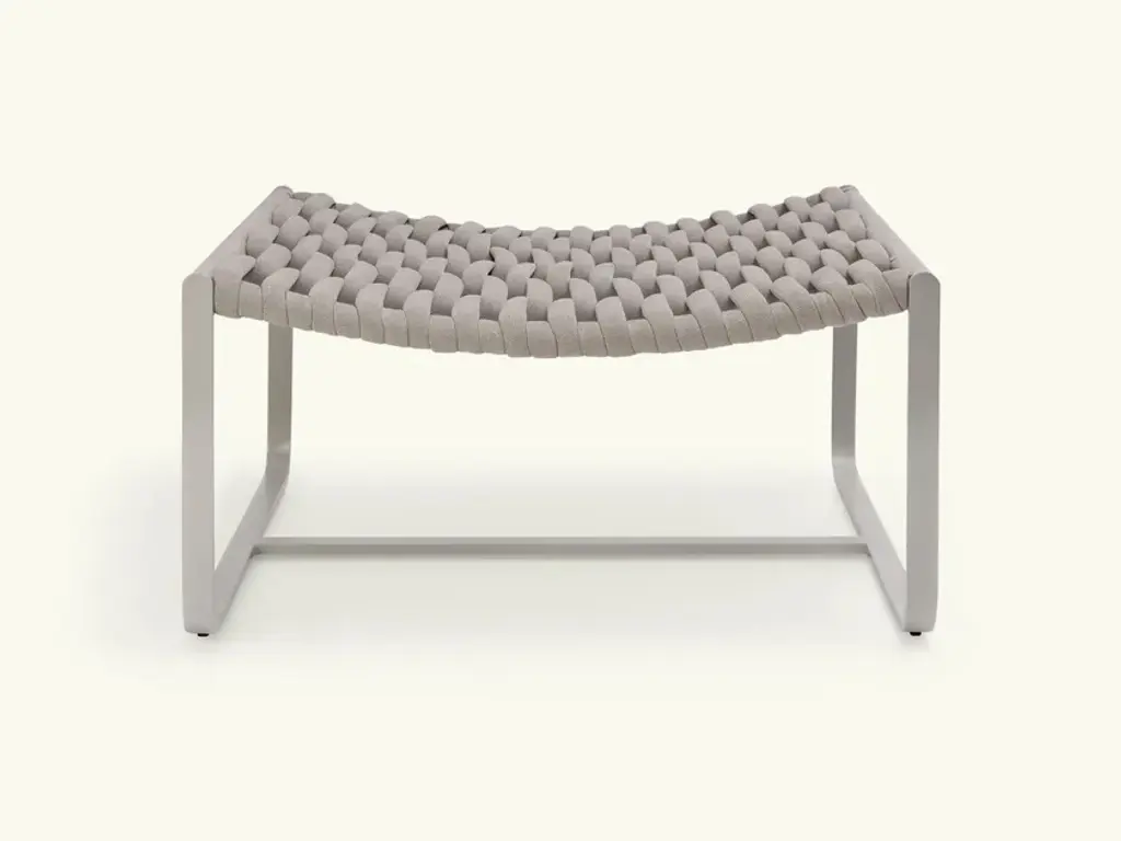 Juta is a metal and hand woven rope structure footrest.Color: 6000153 - Juta light grey pouffSoft, gentle, sinuous: the Juta collection was born from the idea of a fabric seat suspended on a metal frame. A design that welcomes, embraces, relaxes. The rope, woven completely by hand, in addition to characterizing the seat from an aesthetic point of view gives the object softness and lightness. Juta is cozy, but also light: it can be moved easily from one part of the garden to another. Juta is offered in four color variations: from more natural shades to brighter and bolder ones, for an even more iconic style.