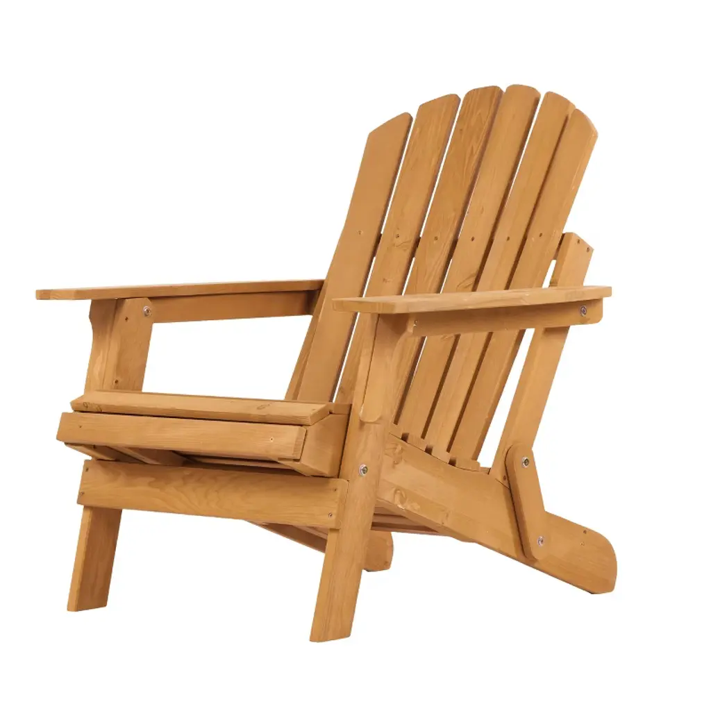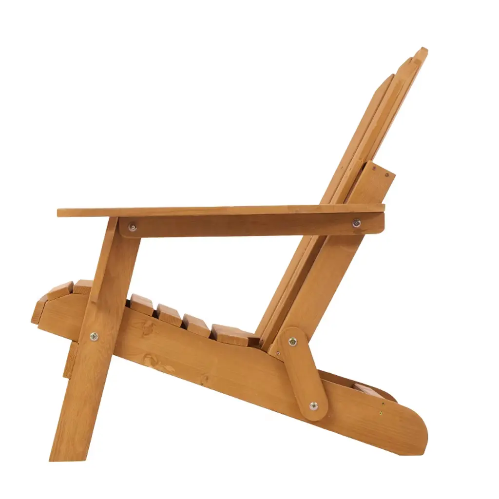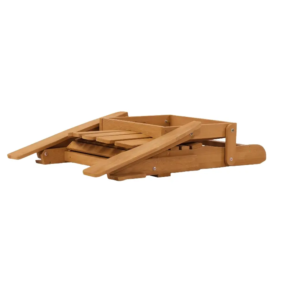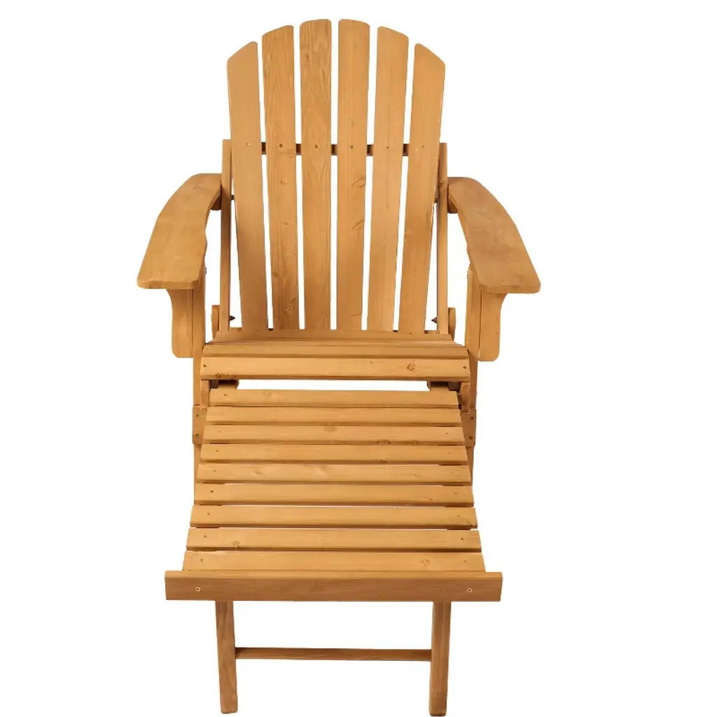 Relax in comfort with this premium wooden Adirondack chair featuring a built-in retractable footrest and ergonomic design. Crafted from solid wood with eco-friendly paint, it supports 350 lbs and folds easily for compact storage while maintaining generous 54"D seating space. The partially pre-assembled design allows quick setup. Perfect for fire pits, pools or porches with its weather-resistant construction and space-saving foldable frame that combines portability with lasting durability.