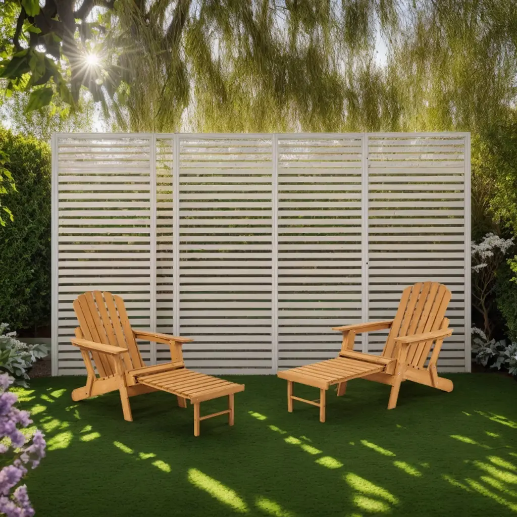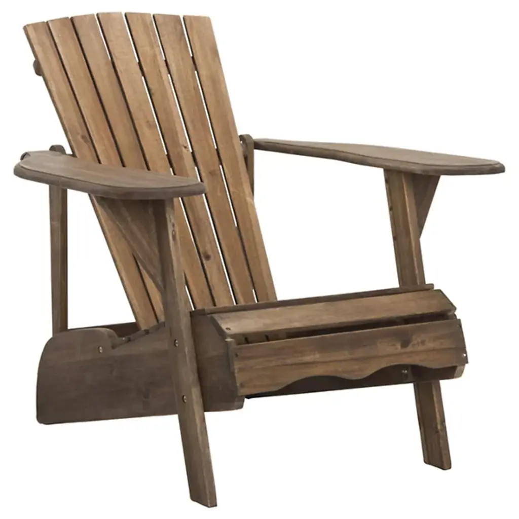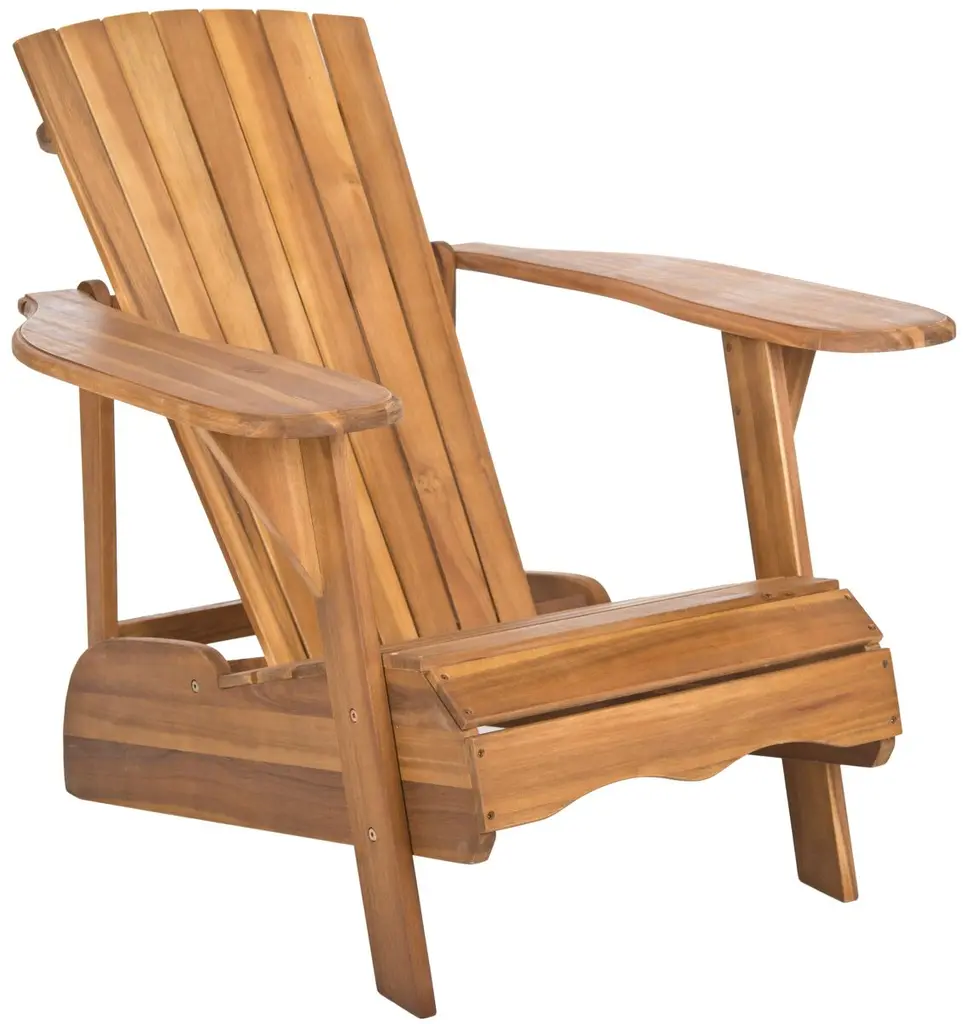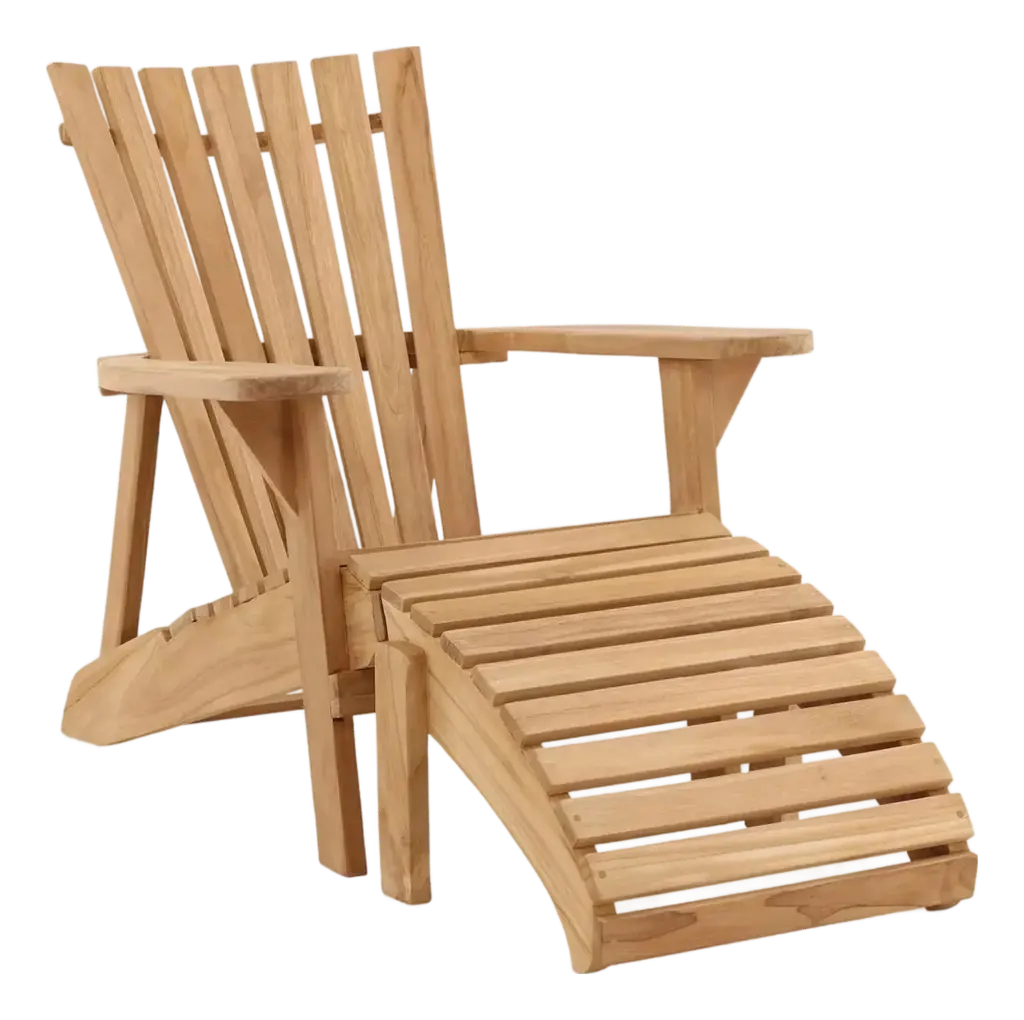 Relax in comfort with this premium wooden Adirondack chair featuring a built-in retractable footrest and ergonomic design. Crafted from solid wood with eco-friendly paint, it supports 350 lbs and folds easily for compact storage while maintaining generous 54"D seating space. The partially pre-assembled design allows quick setup. Perfect for fire pits, pools or porches with its weather-resistant construction and space-saving foldable frame that combines portability with lasting durability.