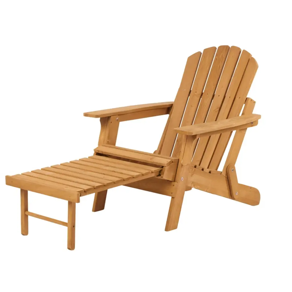 Tiramisubest Folding Adirondack Chair With Ottoman - Pre-assembled Wood Patio Chair For Backyard, Fire Pit & Pool (Retractable Footrest)
