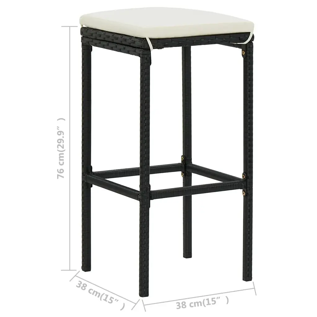 Vidaxl Bar Stool Set Of 2 Black Pe Rattan Medium Footrest Bar Stool