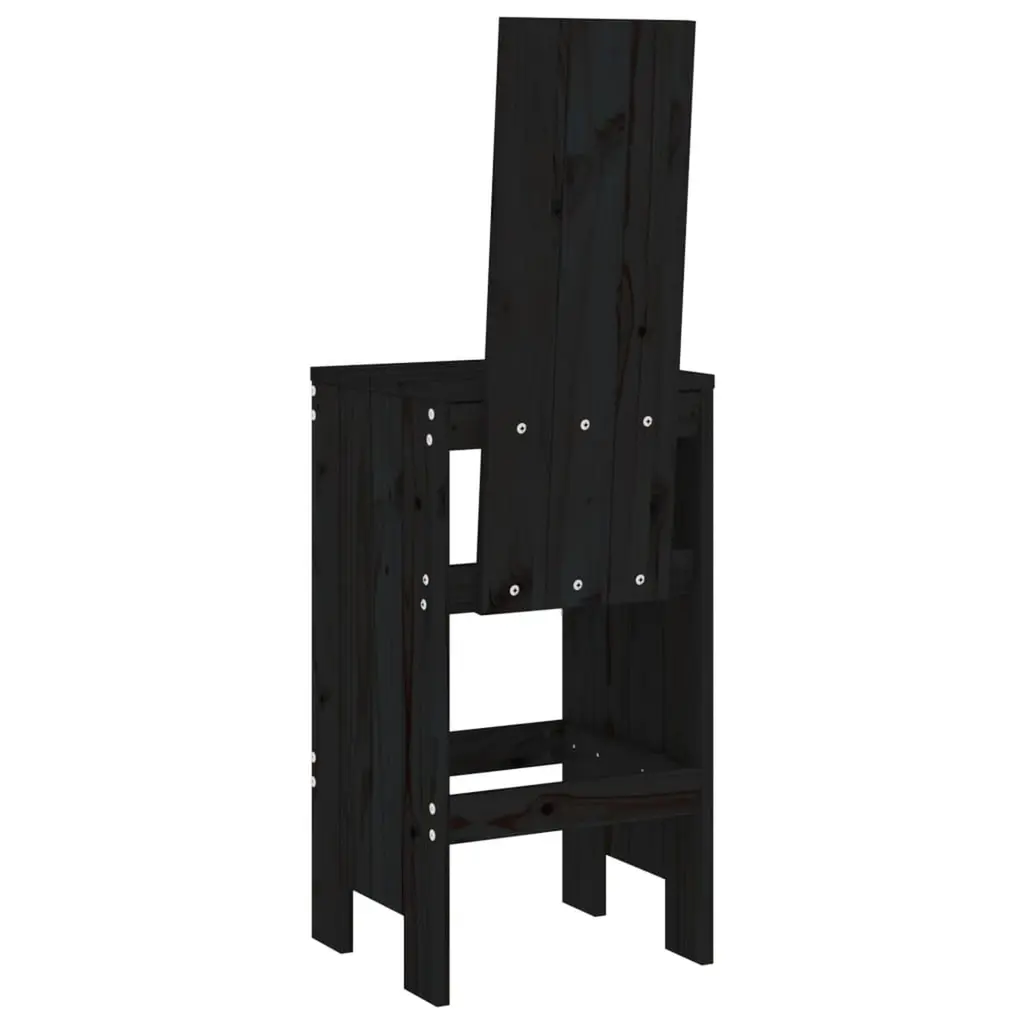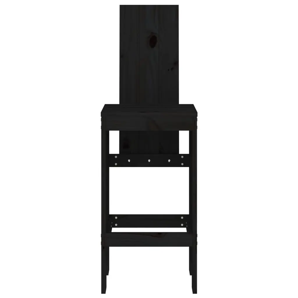 Vidaxl Bar Stool Set Of 2 Black Solid Pine Wood Standard Footrest