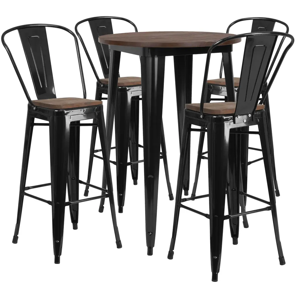 This set of modern black steel bar stools provides a fresh seating option, perfect for high tables or kitchen islands. Their sleek style and sturdy build mean they blend easily with any decor while keeping users comfy. Stylish Design: The sleek black finish enhances any home bar or kitchen, making a chic statement.Durability: Crafted from robust steel, these stools are built for daily use while keeping their good looks.Comfort: The footrest offers great support, perfect for long chats over drinks or meals.Easy Maintenance: A quick wipe with a damp cloth keeps them looking sharp for ages.Indoor Use: Designed for indoor spaces, ideal for home bars, kitchens, or cafes.
