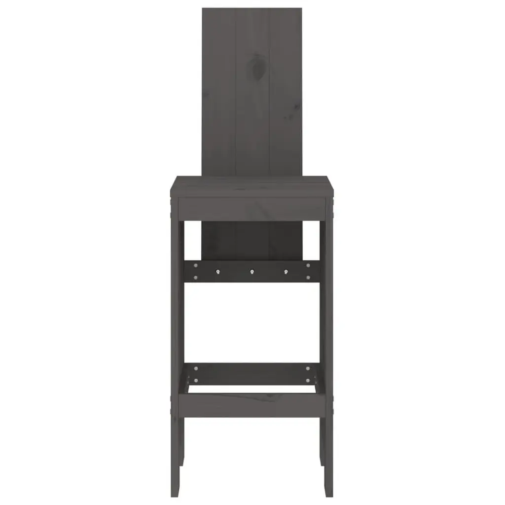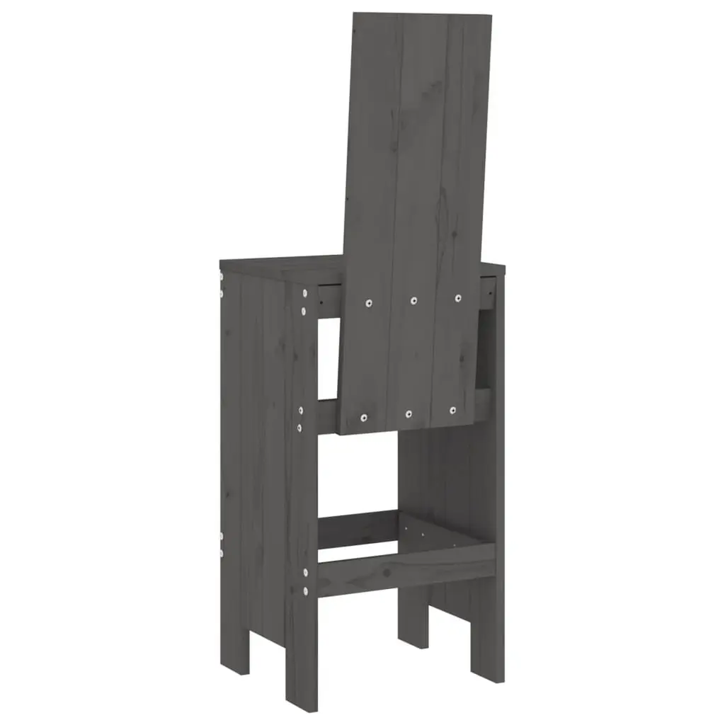 Vidaxl Bar Stool Set Of 2 Grey Solid Pine Wood Large Footrest