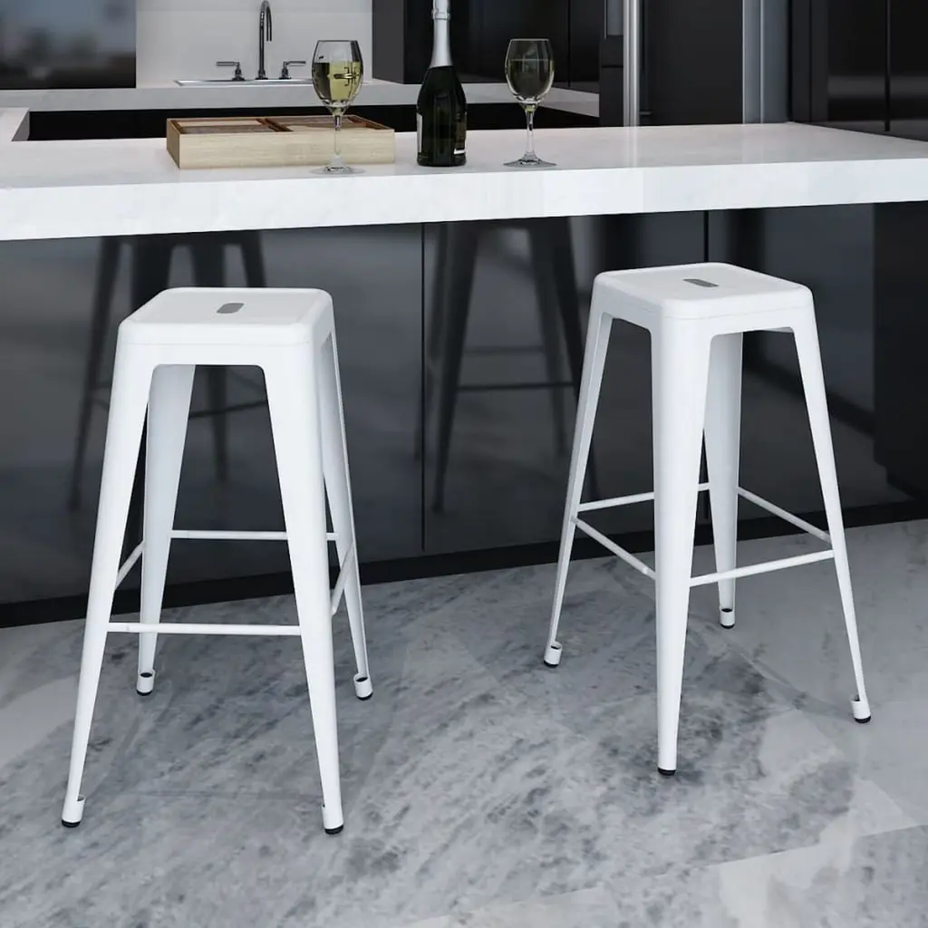 Vidaxl Bar Stool Set Of 2 White Steel 16.9 X 16.9 X 29.9 In Footrest