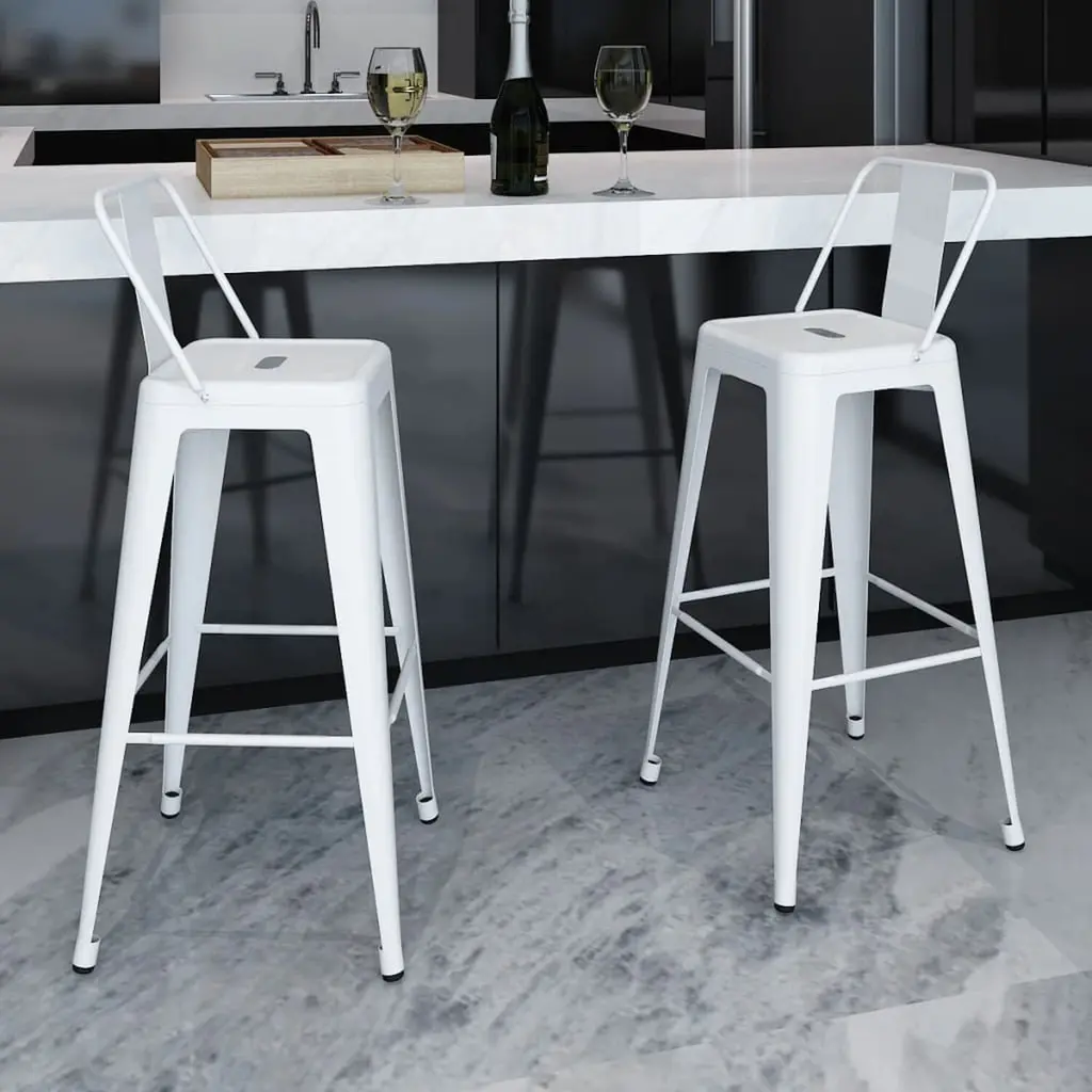 Vidaxl Bar Stool Set Of 2 White Steel Standard Footrest Minimalist