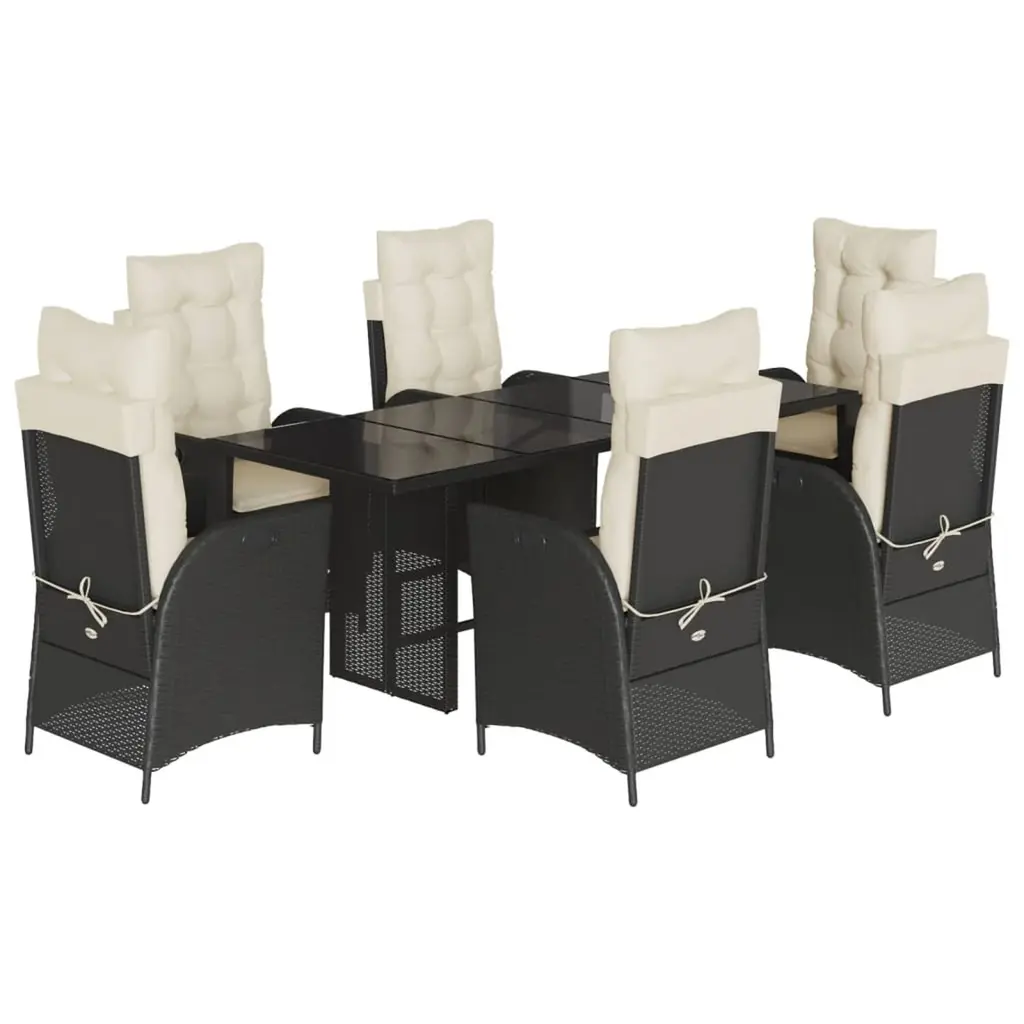 This fab 7-Piece Garden Dining Set has it all - style and function, ready for outdoor fun and relaxation. It includes six chairs with soft, removable cushions, turning any patio or garden into a lovely dining space, perfect for summer hangouts or chill evenings under the stars. Comfort: The soft cushions give a warm feel, ideal for long hangouts.Versatile Use: Made for both inside and outside, suits patio and dining needs.Quality Assurance: Built from UV-resistant materials, making sure it lasts against harsh sunlight.Dynamic Setup: Fits up to six people, perfect for family dinners or brunches.Easy Maintenance: Cushion covers can be taken off and tossed in the washing machine for easy cleaning.