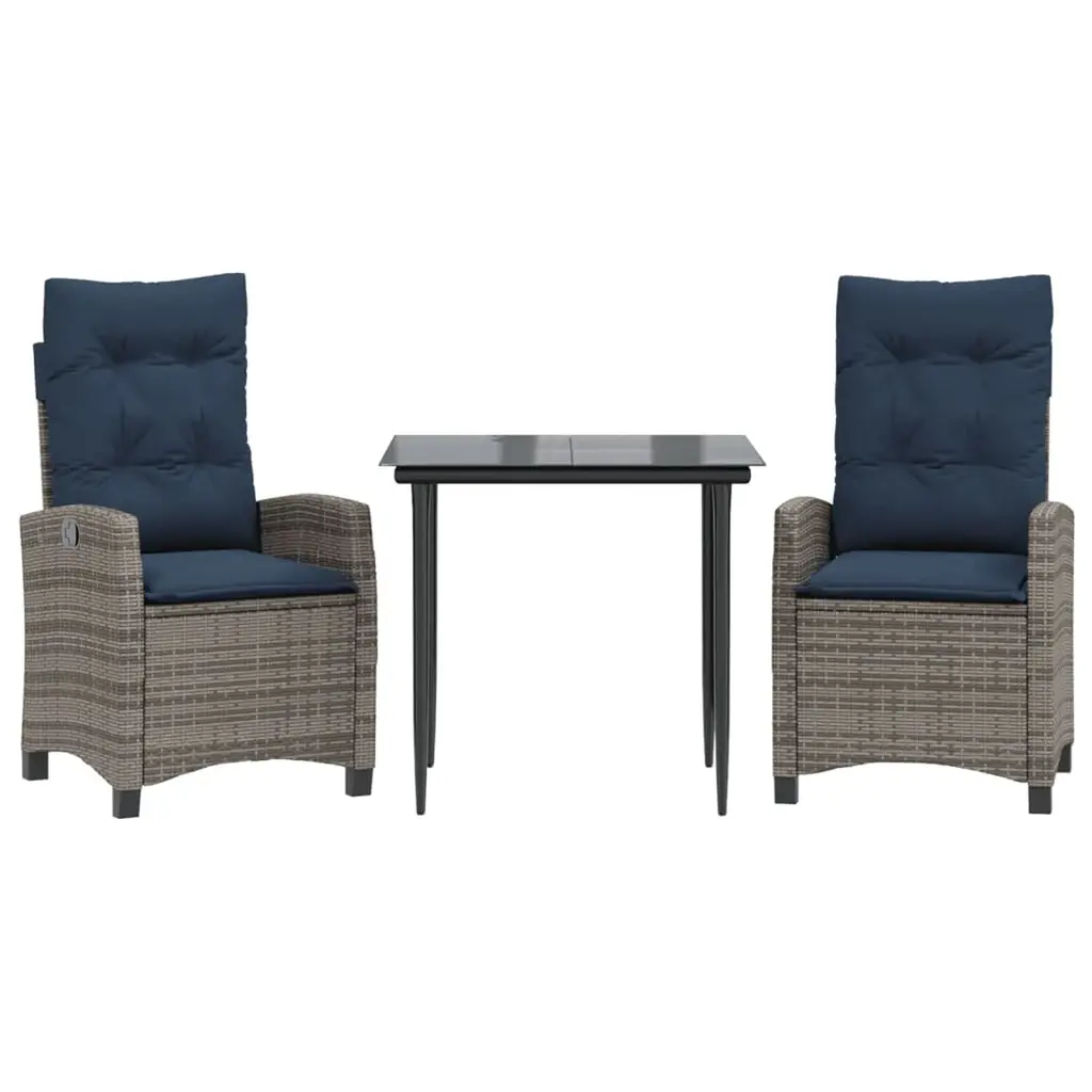 Vidaxl Garden Dining Set Grey Poly Rattan Adjustable Footrests