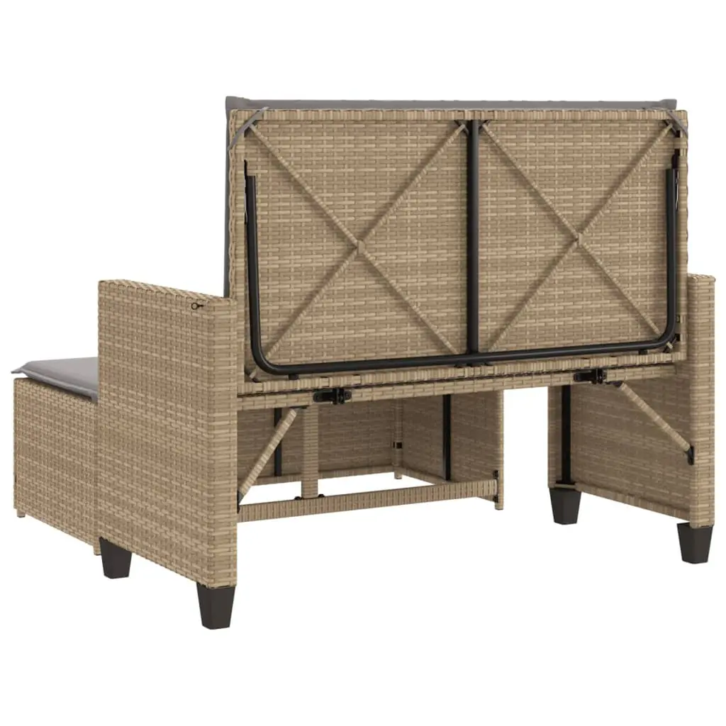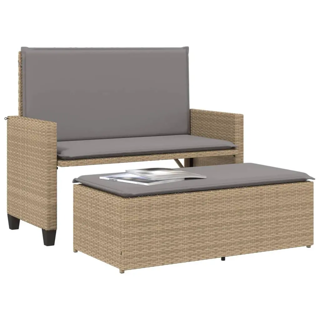 Vidaxl Patio Bench With Cushions And Footstool Beige Poly Rattan