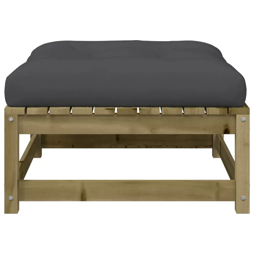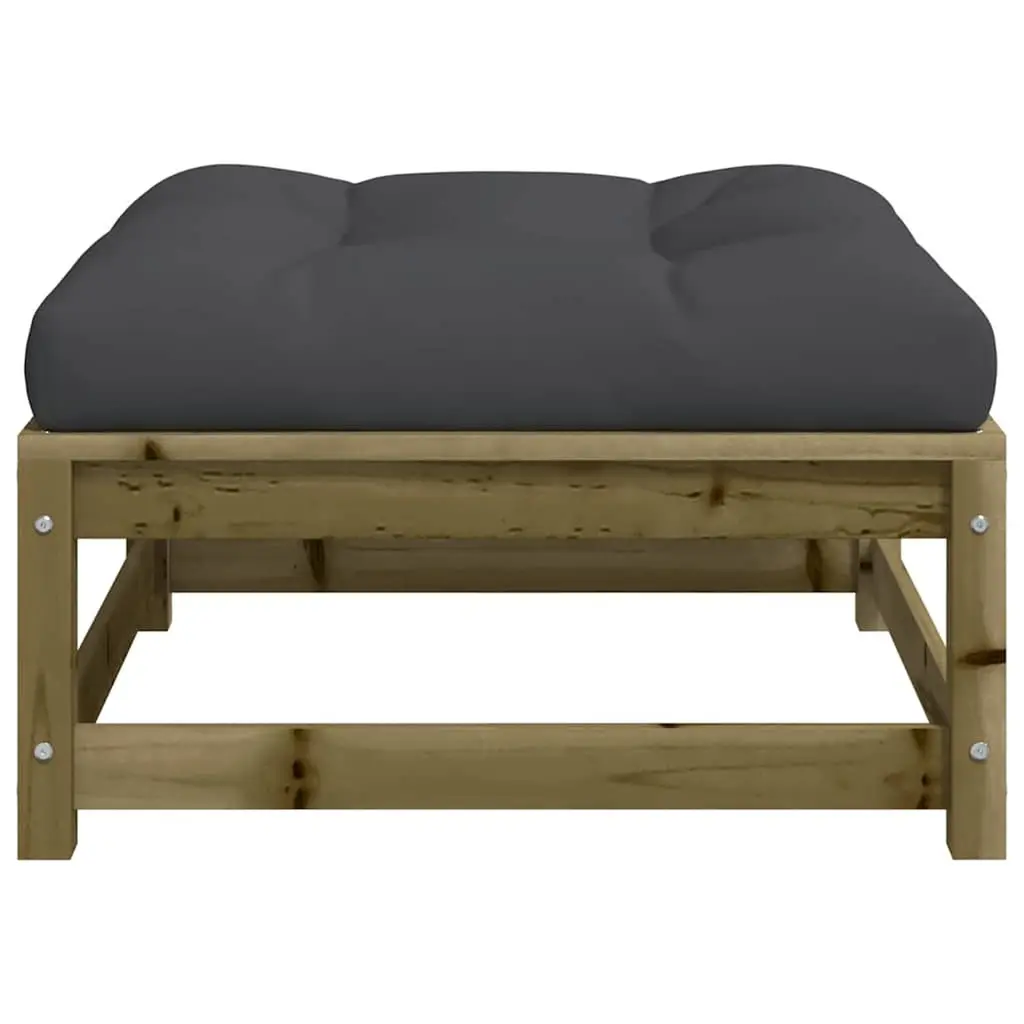 These wooden garden footstools with cushions will make a great addition to your garden, terrace, or patio for chatting with family and friends or just enjoying the weather.Impregnated wood: Solid pine wood is a beautiful natural material. Pine wood has a straight grain, and the knots give the material its signature, rustic look. Impregnation is a preservation process that is carried out by using autoclaves. The pressure-treatment increases resistance to weather.Comfortable seat experience: The thickly-padded cushions make the garden ottoman more comfortable to sit on.Versatile usage: This outdoor ottoman can not only be used to sit or relax your feet, but it can also be used as a coffee table to hold your placed drinks, food, and other decorations.Slatted design: The slatted design of the garden ottoman effectively prevents water from pooling, ensuring that the seat remains dry and free from potential rot.Modular design: This patio ottoman features a modular design, making it completely flexible and easy to move around to suit any setting. You can combine it with other modular segments available in the drop-down menu to create your own personal garden lounge set configurations!Good to know:To make sure your outdoor furniture stays beautiful, we recommend protecting it with a waterproof cover.