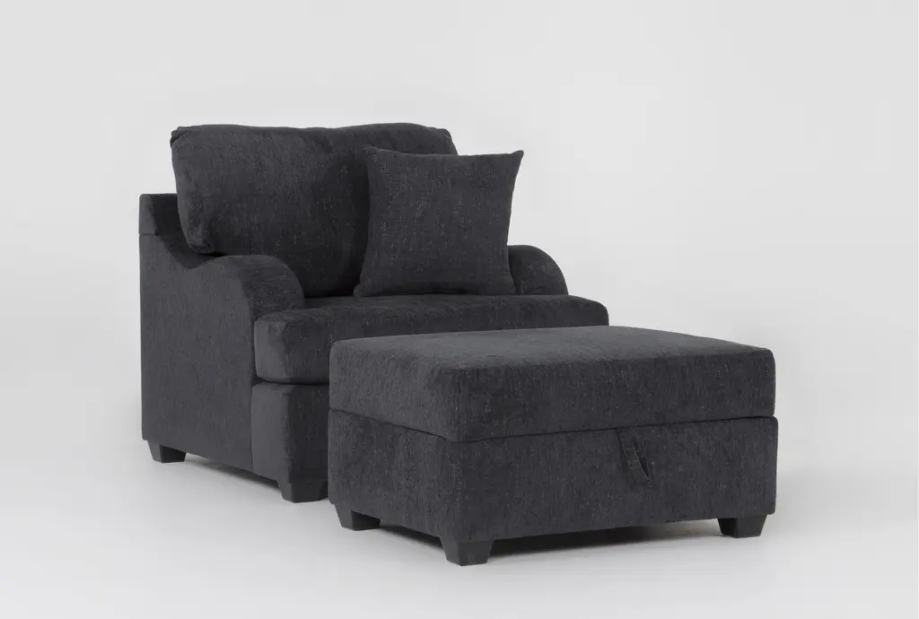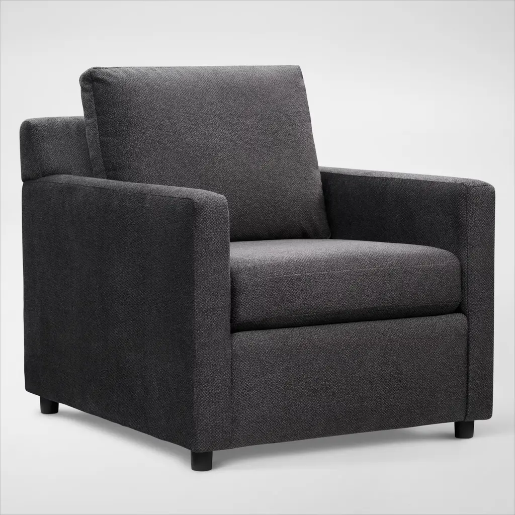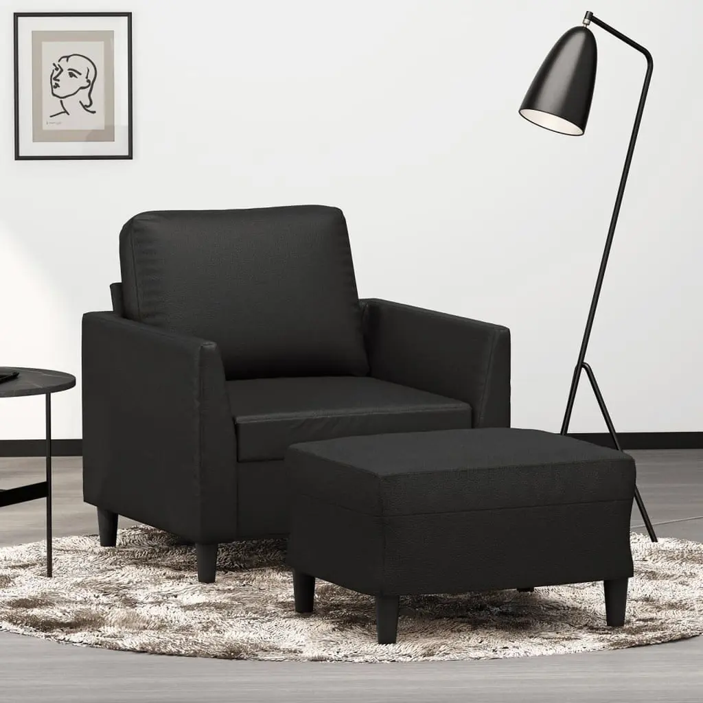 This modern sofa chair with footstool is a wicked mix of style and comfort, making it the perfect seat for various rooms in your home. Its sleek black color with a smooth faux leather finish gives it a contemporary look, ideal for living rooms, bedrooms, or offices where you just want to chill. Trendy Aesthetic: The clean lines and square shape of this chair create a sophisticated vibe that fits right into modern decor. Its minimalist design ensures it complements your other stuff without overwhelming the room.Super Comfy: With a boxed cushion that’s just the right firmness, this chair is made for comfort whether you’re reading, watching TV, or just winding down at the end of the day.Strong and Durable: Built with top-quality faux leather and plywood, this chair is tough enough for regular use, made to last while being easy to look after.Handy Footstool: The footstool is a great addition for upping your relaxation game, letting you prop up your feet while you lounge around, making it perfect for chilled evenings or casual hangouts.Space-Saving Design: Its compact size means this chair is ideal for snug spaces, fitting neatly in corners or alongside other pieces of furniture to create a welcoming seating area.