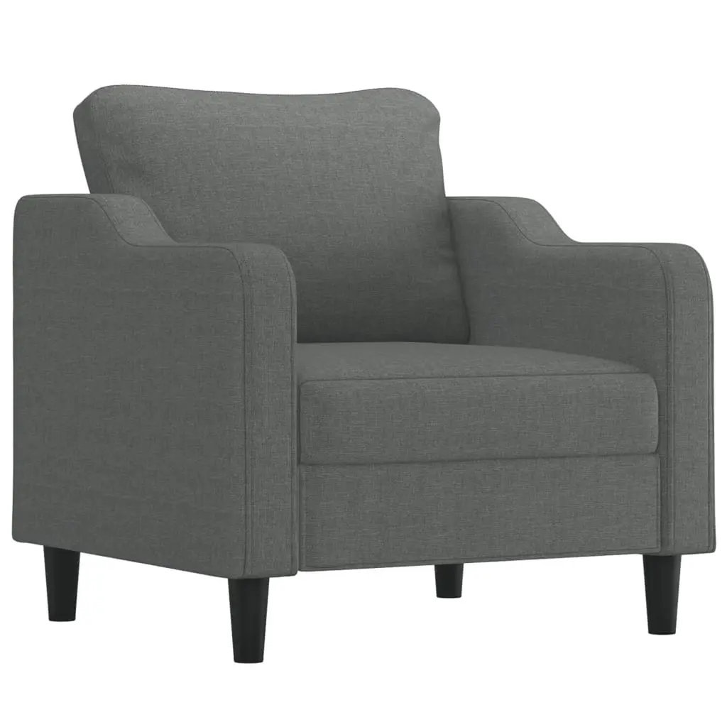 This modern sofa chair with footstool is a perfect mix of style and comfort, made to elevate your living area. Its sleek dark grey upholstery and chic shape create a welcoming vibe that suits all sorts of interior styles, from modern to minimalist. Stylish Aesthetic: The modern design adds a chic touch to any room, whether it’s in a living room, bedroom, or office. This sofa chair and footstool duo brings an eye-catching element that enhances your decor.Superior Comfort: Packed with plush cushioning, this chair is all about relaxation. The supportive design lets you lounge, read, or enjoy your TV shows in utmost comfort.Quality Construction: Built with breathable polyester and a sturdy plywood frame, this chair stands the test of time while looking smart. The strong fabric holds up to daily use, staying fresh.Versatile Usage: Perfect for kicking back with a good book or having easy chats, this chair is great for several activities. It fits right at home in apartments, snug dens, or adaptable living areas.Compact Design: Its modest dimensions make this sofa chair a good fit for limited space, helping you make the most of your indoor area. It’s designed for urban living without skimping on comfort.