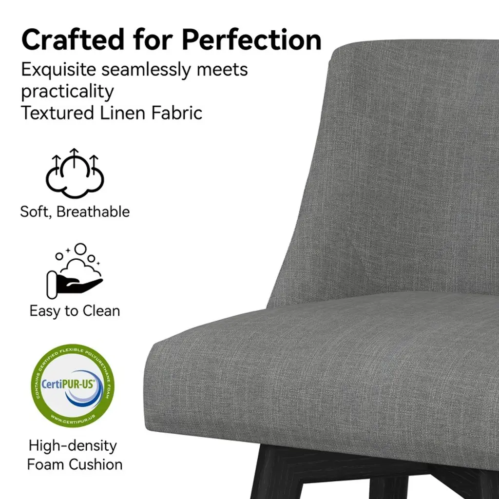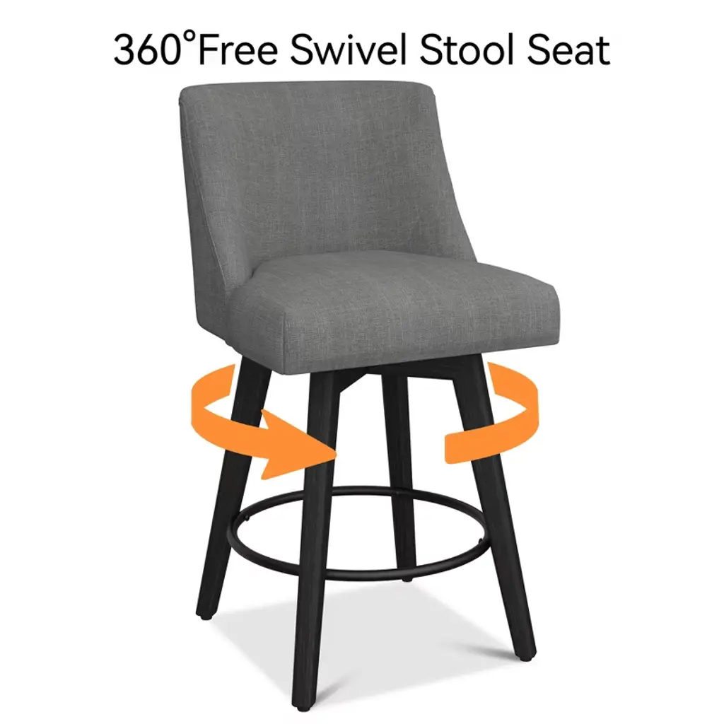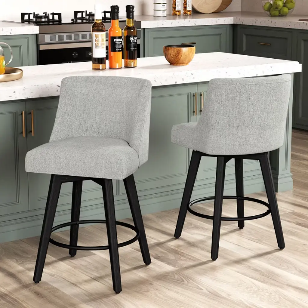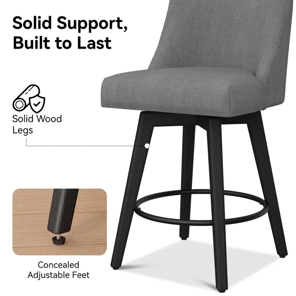 Vipbear Counter Height Swivel Bar Stools, Bar Stools With Footrest, Upholstered With Back And Solid Wood Leg, Light Gray