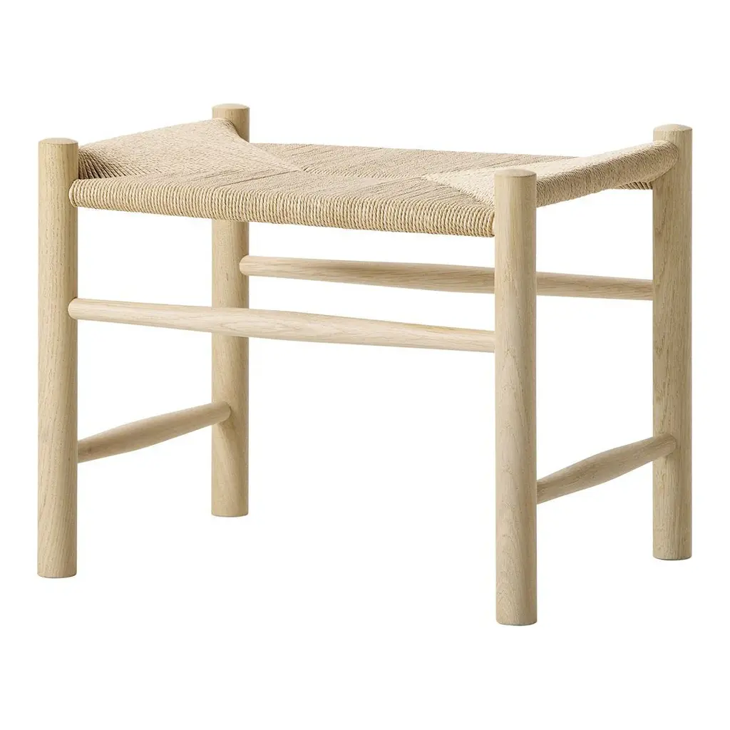 Wegner's simple corded seat stool is an example of the Danish tradition of designing modern furniture using sticks and dowels. It can be used as a footstool as well as a standalone seat.