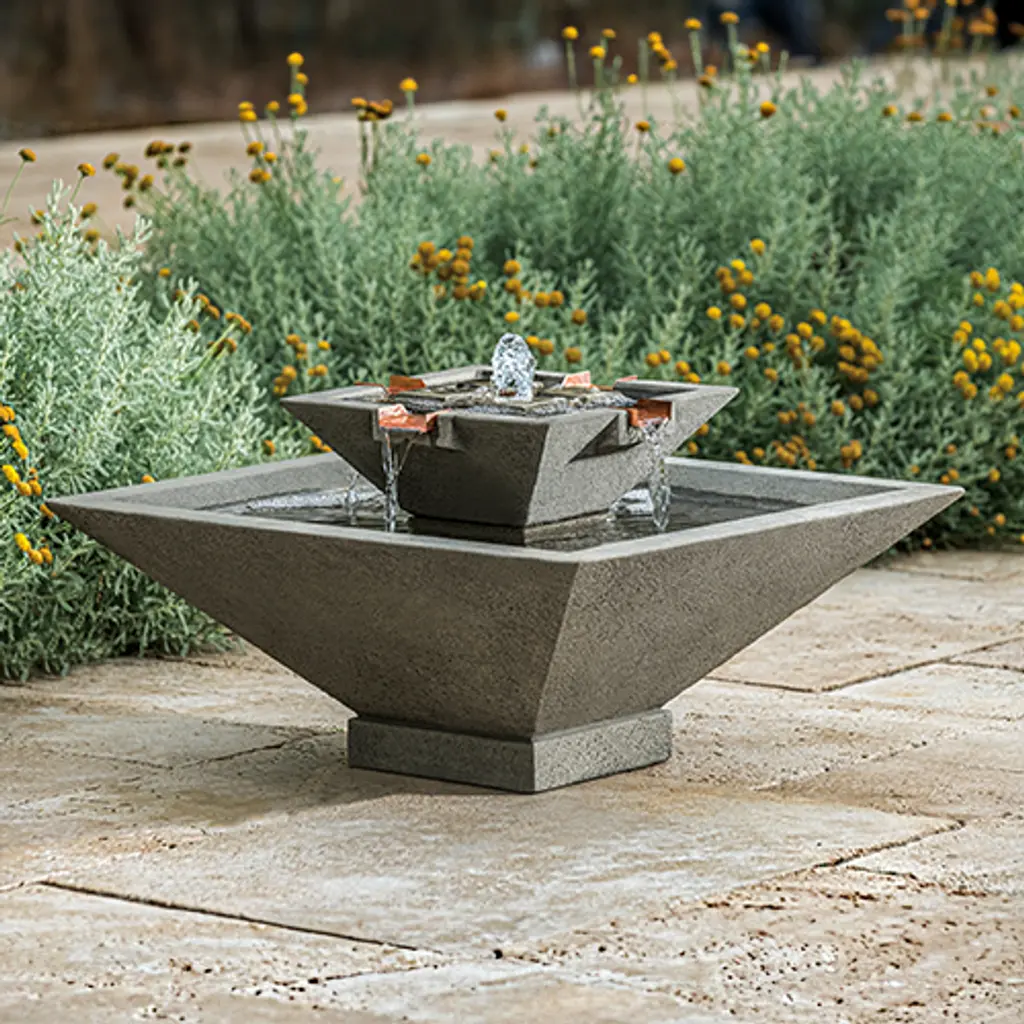 This two-tier fountain appeals to multiple senses, producing a moderate splash and a soothing steady stream of sound from its five faucets. It's made in the USA of durable cast stone from locally sourced natural materials, with a hand-applied finish that adds to its gravitas.