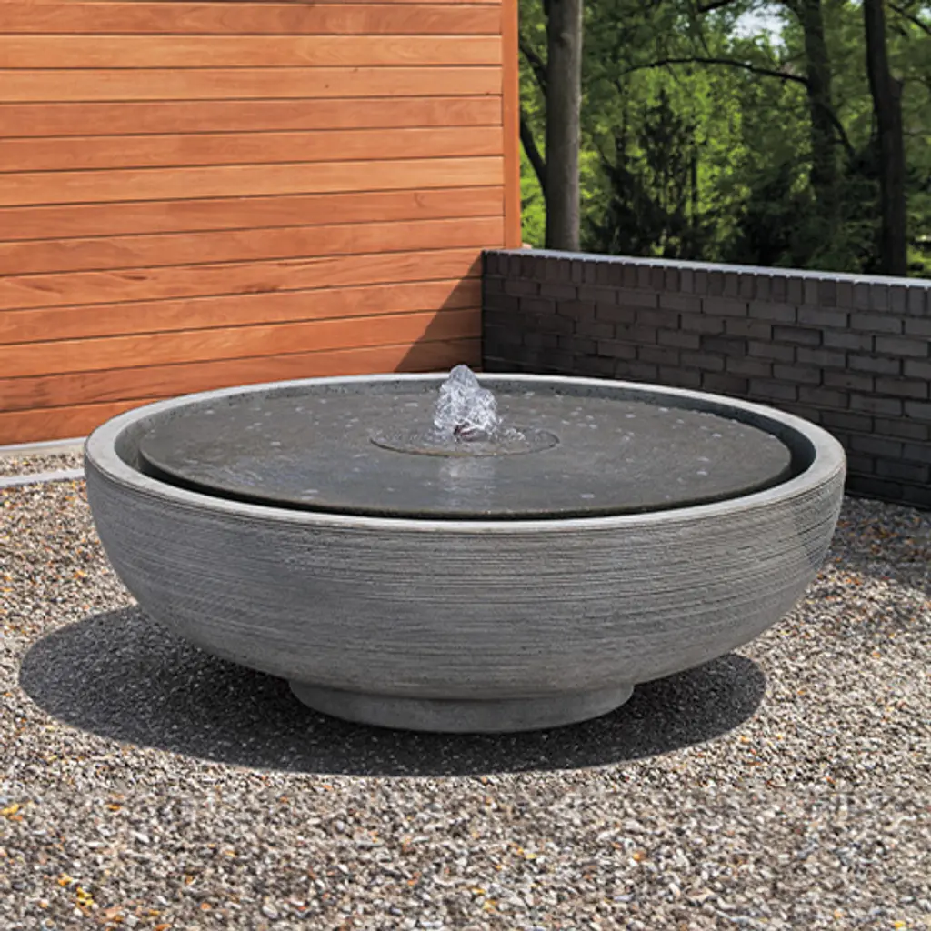 If you're looking for a contemporary fountain that produces only a minimal splash but can be heard at a distance, you've just found it. Designed with durability in mind, this cast-stone fountain was made in the USA using locally sourced natural materials. Its hand-applied patina replicates the look of naturally aged materials, adding to its elegance.