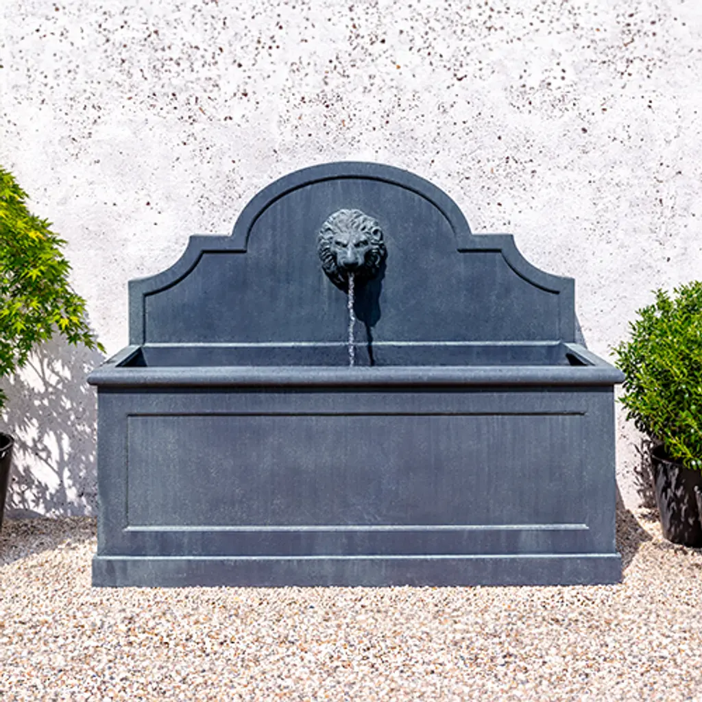 Bring Old World grandeur and the sound of a soothing stream to your garden with this nearly five-foot-long fountain. It's crafted of glass fiber reinforced concrete (GFRC) that is resistant to extreme temperatures, rust, and fire, and it has a hand-applied finish that accentuates its elegance.