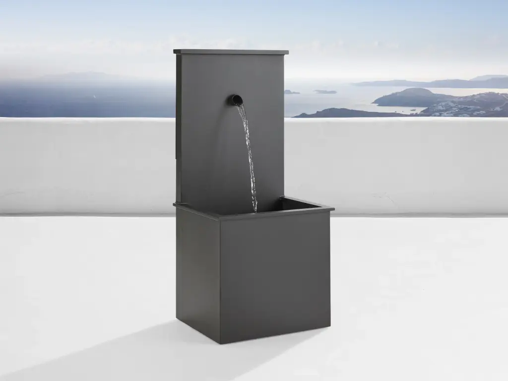 Chic and contemporary, our Ios Fountains are crafted to elevate any landscape design. Made from lightweight-yet-durable aluminum with a rich iron-colored finish, these outdoor water fountains feature a submersed water pump and sleek design to complement your outdoor oasis with the serene sound of flowing water.