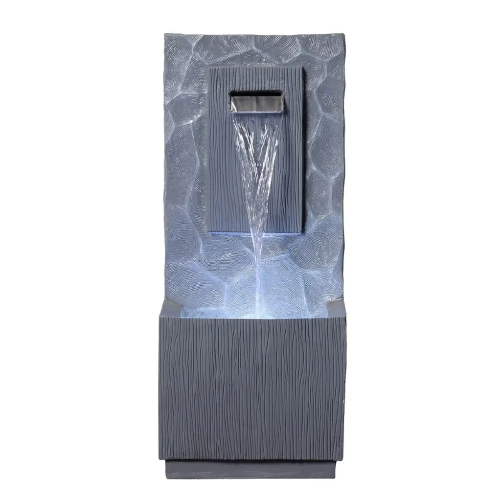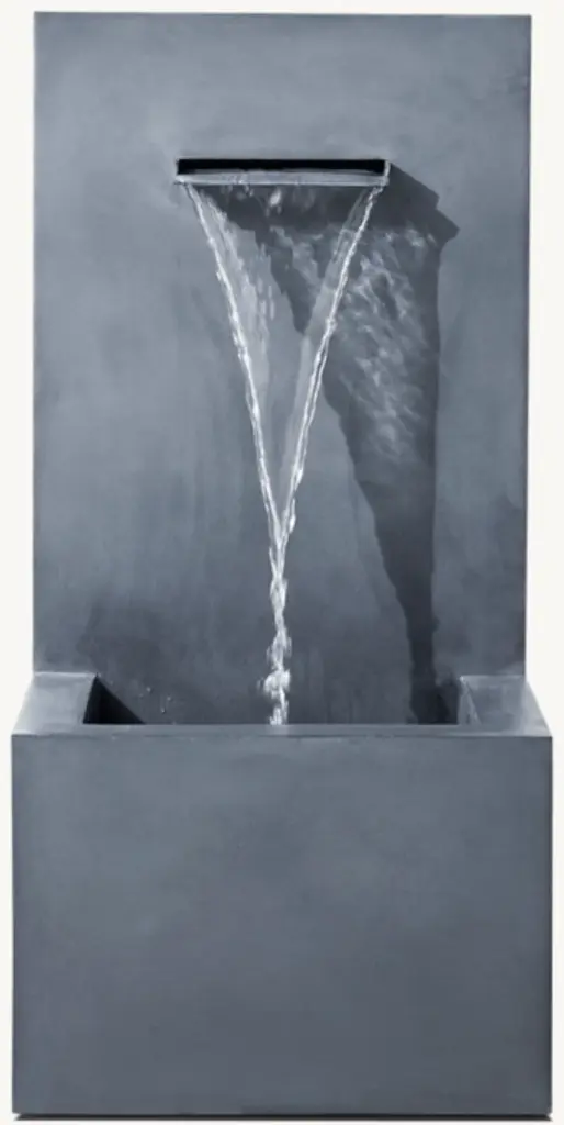 The pure geometry of our modernist fountains is the perfect backdrop for a graceful jet of water. Handcrafted of powdercoated aluminum with a weathered zinc finish, these garden sculptures are striking in their simplicity.