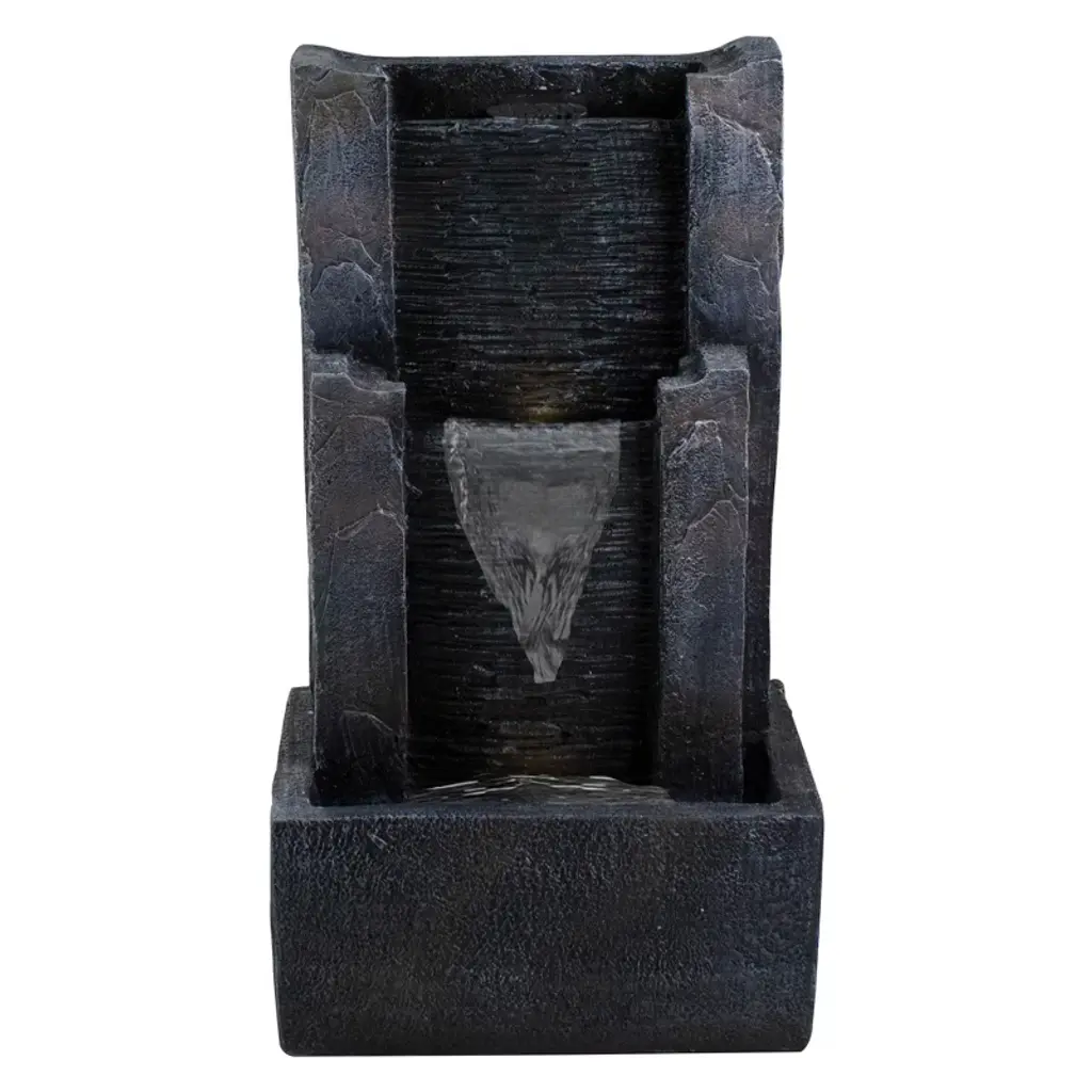 The pure geometry of our modernist fountains is the perfect backdrop for a graceful jet of water. Handcrafted of powdercoated aluminum with a weathered zinc finish, these garden sculptures are striking in their simplicity.