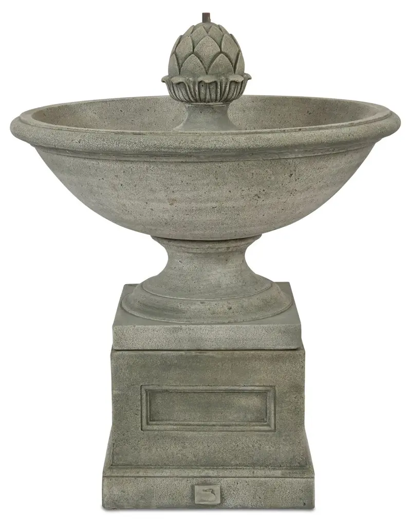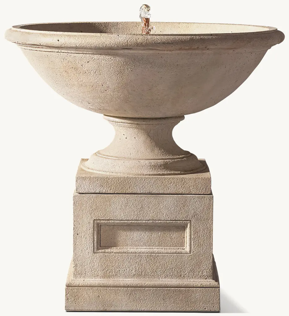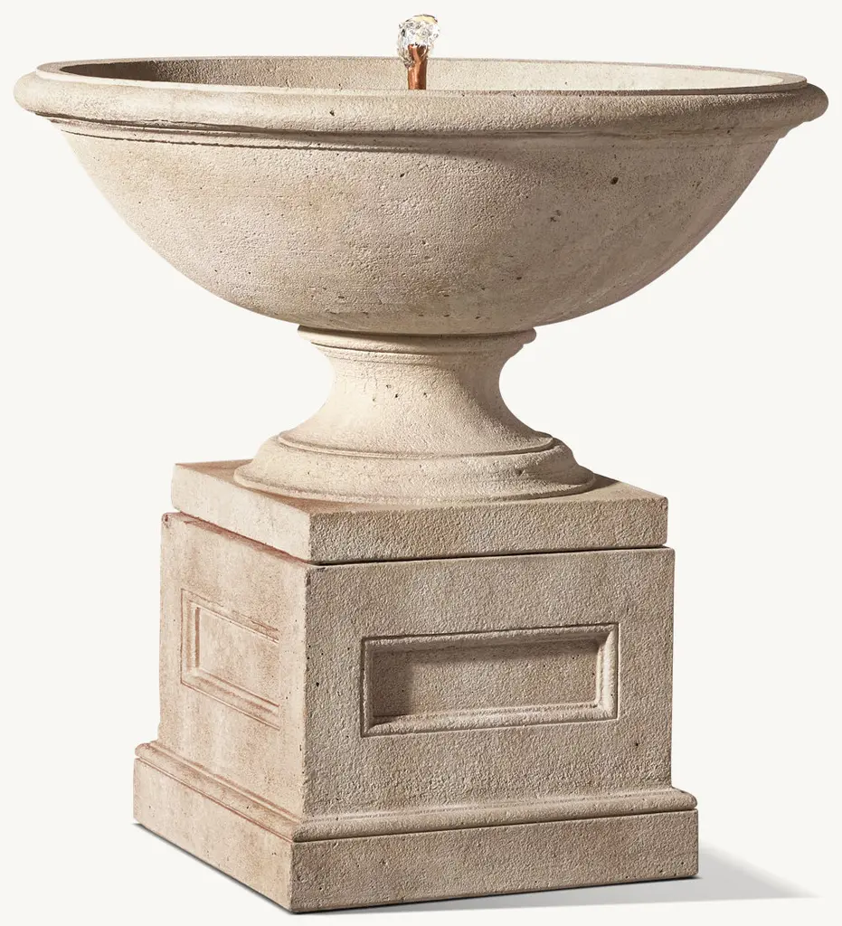 With its graceful urn set atop a square molded plinth base, our fountain's form is inspired by classical Italian architecture. Crafted of durable, weather-resistant materials for lasting beauty, it features a carefully hand-applied finish that captures the patina of aged stone.