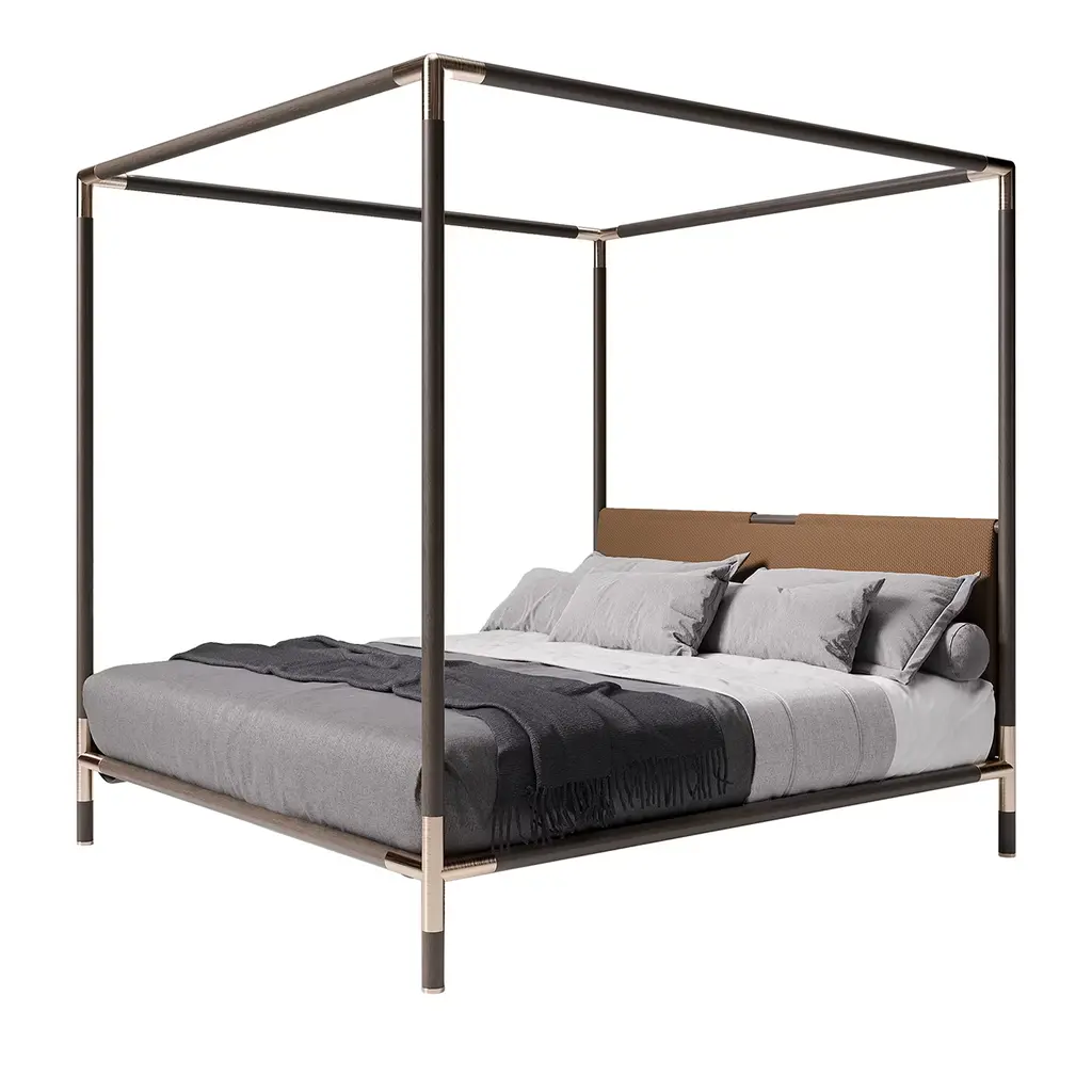 Zanotta Small Milleunanotte Four-Poster Bed & Canopy In Grey Varnished Oak Frame