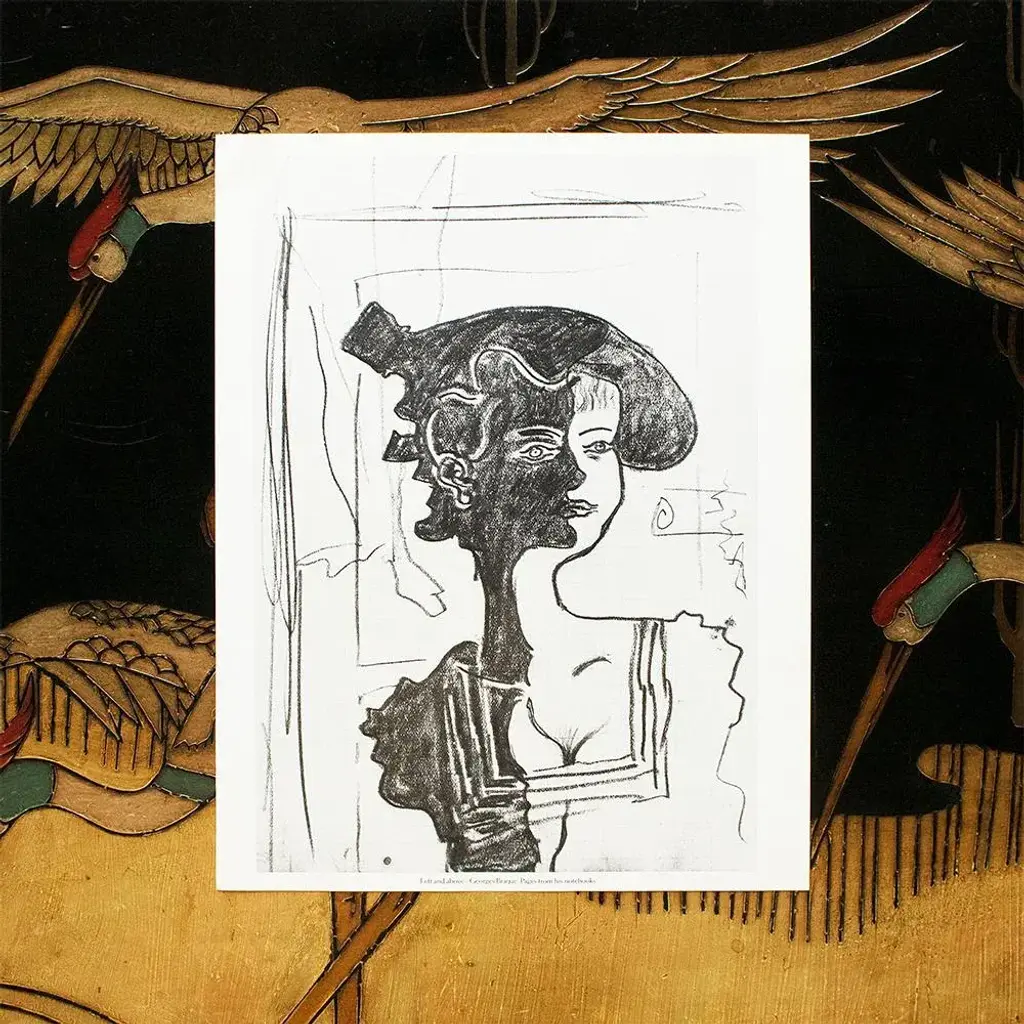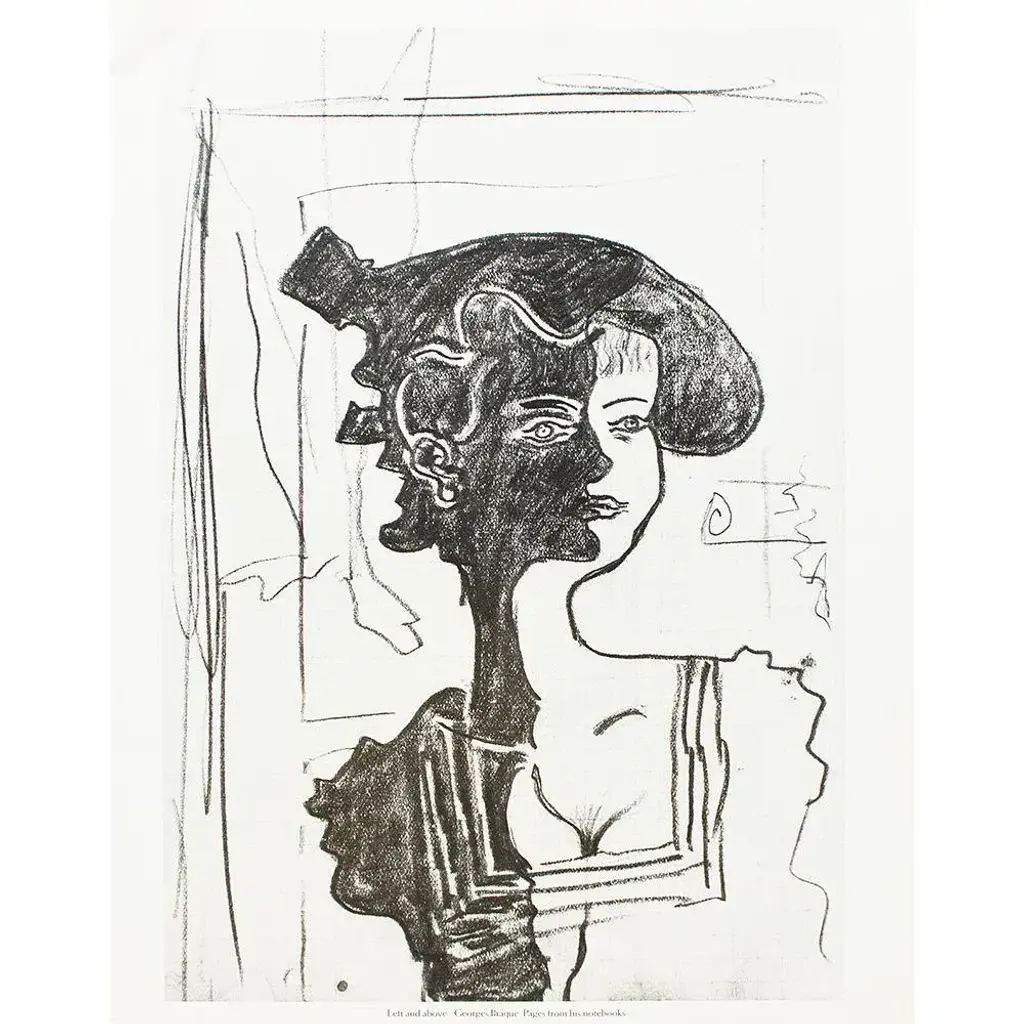 An excellent large full-color print of color lithograph "Bible" by Marc Chagall for cover of Verve magazine for September 1956, when it was first published. This is second edition printed in Switzerland in 1987, in a rare art book dedicated to Verve. Superb quality. Publisher even had to put word "reproduction" below the image and at the lower right corner of the piece. Detailed. Rich colors. Reproduction of black and white drawing by Georges Braque from his notebook, is printed on back. Excellent condition - minor edge wear, never framed. Overall 10.35"W x 13.90"H Image 9.75"W x 13.25"H