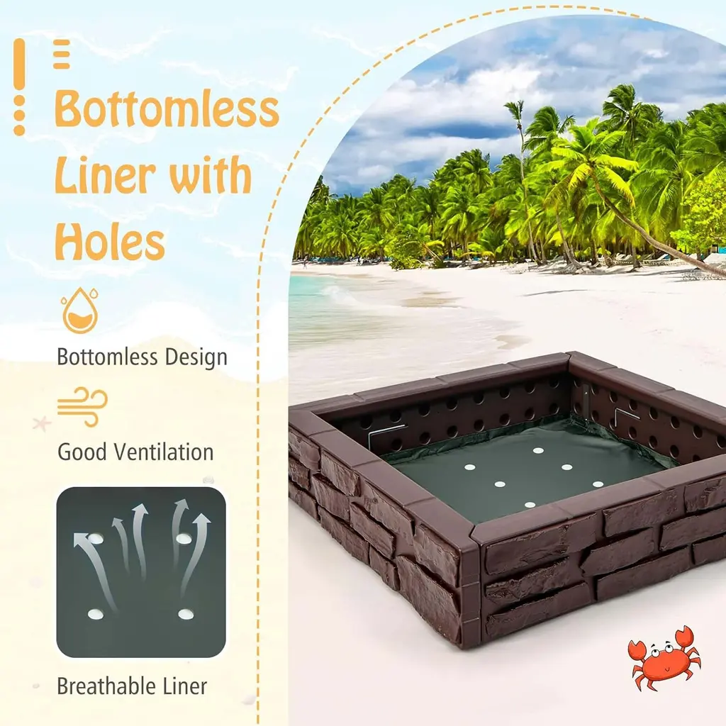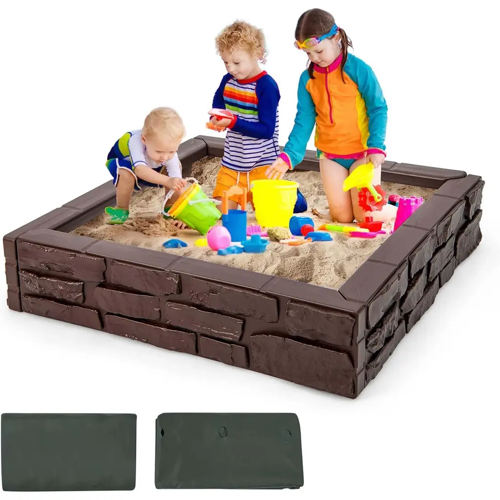 2-In-1 Kids Sandbox Hdpe Sand Pit Weather Resistant Sand Box W/ Cover - Brown