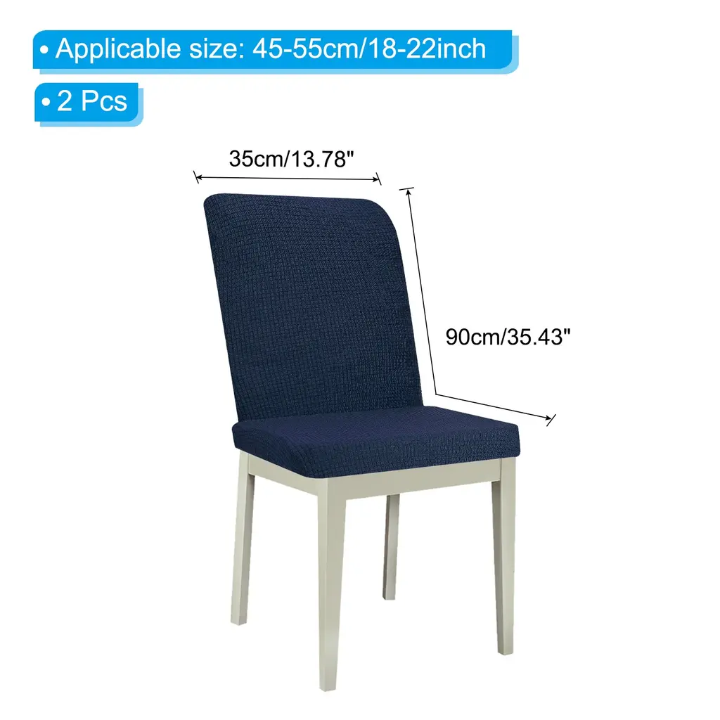 The chair seat cover presents a good option to shield the chair seat while simultaneously enhancing the comfort of their seating experience. It is good for kitchens, restaurants, offices, hotels, cafes, conferences, celebrations, banquets, and ceremonies.Specification Color: BlackMaterial: FabricOverall Size: 90cmx35cm/35.43x13.78inch (L*W)Packing List: 2 x Chair Seat Covers Rectangle AdvantageThe chair seat covers are crafted from synthetic fabric material, fine workmanship, providing a soft and comfortable feel. The use of this fabric ensures that the slipcovers are resistant to water, wear, and wrinkles, and do not shrink or fade over time. After replacing it, you will get a new look of chair.360° all-round wrapping, smooth and close-fitting, with no dead corners. The dust-proof shower cap design makes it easy to use and firmly wraps around the sofa, ensuring a truly non-slip fit.Instruction The chair seat covers are designed with an elastic band, making it easy to slip them over the saddle seat. Once in place, it will stay securely and prevent any slipping. It is machine washable for easy cleaning and maintenance, making it a practical choice for everyday use.NOTE:Before buying, be sure to measure the size and thickness of your bar stool cushion. Different styles of bar stool covers may be suitable for different sizes, so make sure that the one you choose fits your bar stool correctly.