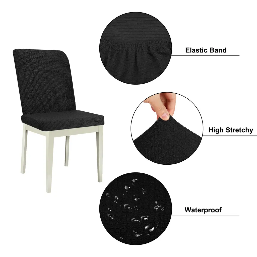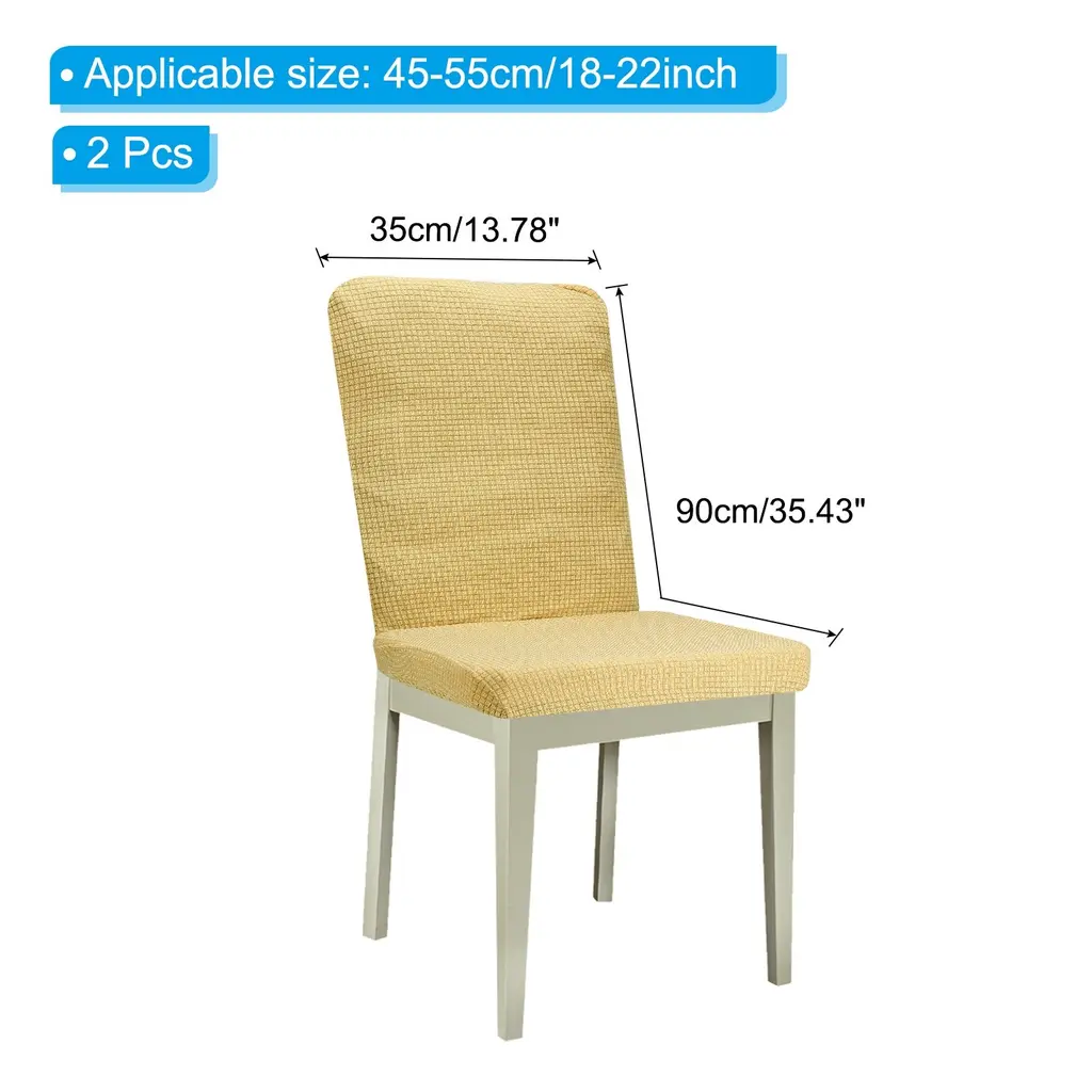 The chair seat cover presents a good option to shield the chair seat while simultaneously enhancing the comfort of their seating experience. It is good for kitchens, restaurants, offices, hotels, cafes, conferences, celebrations, banquets, and ceremonies.Specification Color: BlackMaterial: FabricOverall Size: 90cmx35cm/35.43x13.78inch (L*W)Packing List: 2 x Chair Seat Covers Rectangle AdvantageThe chair seat covers are crafted from synthetic fabric material, fine workmanship, providing a soft and comfortable feel. The use of this fabric ensures that the slipcovers are resistant to water, wear, and wrinkles, and do not shrink or fade over time. After replacing it, you will get a new look of chair.360° all-round wrapping, smooth and close-fitting, with no dead corners. The dust-proof shower cap design makes it easy to use and firmly wraps around the sofa, ensuring a truly non-slip fit.Instruction The chair seat covers are designed with an elastic band, making it easy to slip them over the saddle seat. Once in place, it will stay securely and prevent any slipping. It is machine washable for easy cleaning and maintenance, making it a practical choice for everyday use.NOTE:Before buying, be sure to measure the size and thickness of your bar stool cushion. Different styles of bar stool covers may be suitable for different sizes, so make sure that the one you choose fits your bar stool correctly.