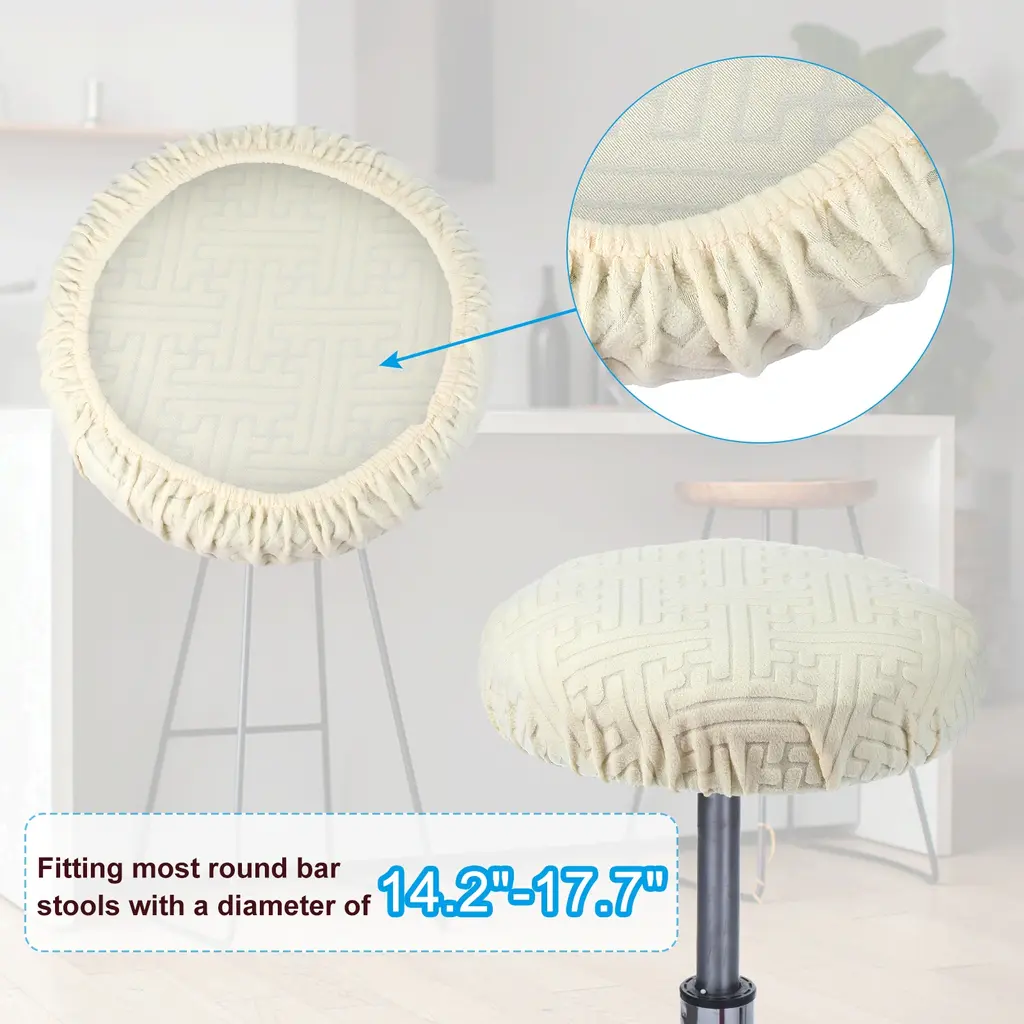 This round bar stool cover is designed to protect your bar stool cushion from spills, scratches, and general wear and tear. It is a good solution for anyone looking to protect their bar stool cushion while adding a comfortable touch to their seating experience. Its soft material, stretchy design, and easy-care maintenance make it a practical and convenient choice for your home or business.SpecificationMaterial: VelvetThickness: 4 cm / 1.5 inchFit for Diameter: 36-45 cm / 14.2-17.7 inchPacking List: 2 Pcs x Round Bar Stool CoverAdvantageMade of velvet, this cushion cover is soft, durable, and stretchy. It has an elastic design and is easy to install and remove. It fits most round bar stools with an 14.2-17.7 inch diameter. The cover not only protects your stool from wear and scratch but also provides a sense of comfort to your seating experience. It is available in various colors, allowing you to match it to your decor and style.InstructionTo use the round bar stool cover, simply slide it over the cushion and adjust it to fit snugly. It is machine washable for easy cleaning and maintenance, making it a practical choice for everyday use.NOTE: Before buying, be sure to measure the diameter and thickness of your bar stool cushion. Different styles of bar stool covers may be suitable for different sizes, so make sure that the one you choose fits your bar stool correctly.