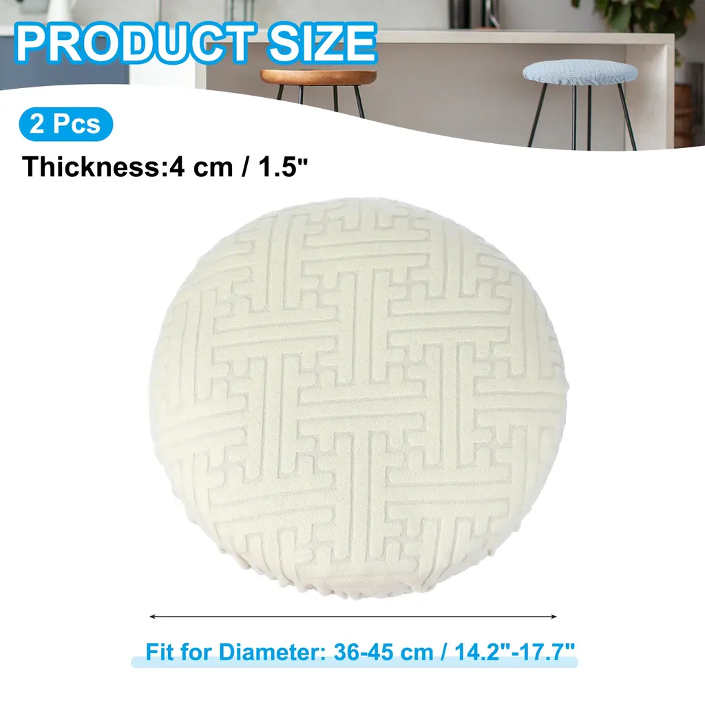 This round bar stool cover is designed to protect your bar stool cushion from spills, scratches, and general wear and tear. It is a good solution for anyone looking to protect their bar stool cushion while adding a comfortable touch to their seating experience. Its soft material, stretchy design, and easy-care maintenance make it a practical and convenient choice for your home or business.SpecificationMaterial: VelvetThickness: 4 cm / 1.5 inchFit for Diameter: 36-45 cm / 14.2-17.7 inchPacking List: 2 Pcs x Round Bar Stool CoverAdvantageMade of velvet, this cushion cover is soft, durable, and stretchy. It has an elastic design and is easy to install and remove. It fits most round bar stools with an 14.2-17.7 inch diameter. The cover not only protects your stool from wear and scratch but also provides a sense of comfort to your seating experience. It is available in various colors, allowing you to match it to your decor and style.InstructionTo use the round bar stool cover, simply slide it over the cushion and adjust it to fit snugly. It is machine washable for easy cleaning and maintenance, making it a practical choice for everyday use.NOTE: Before buying, be sure to measure the diameter and thickness of your bar stool cushion. Different styles of bar stool covers may be suitable for different sizes, so make sure that the one you choose fits your bar stool correctly.