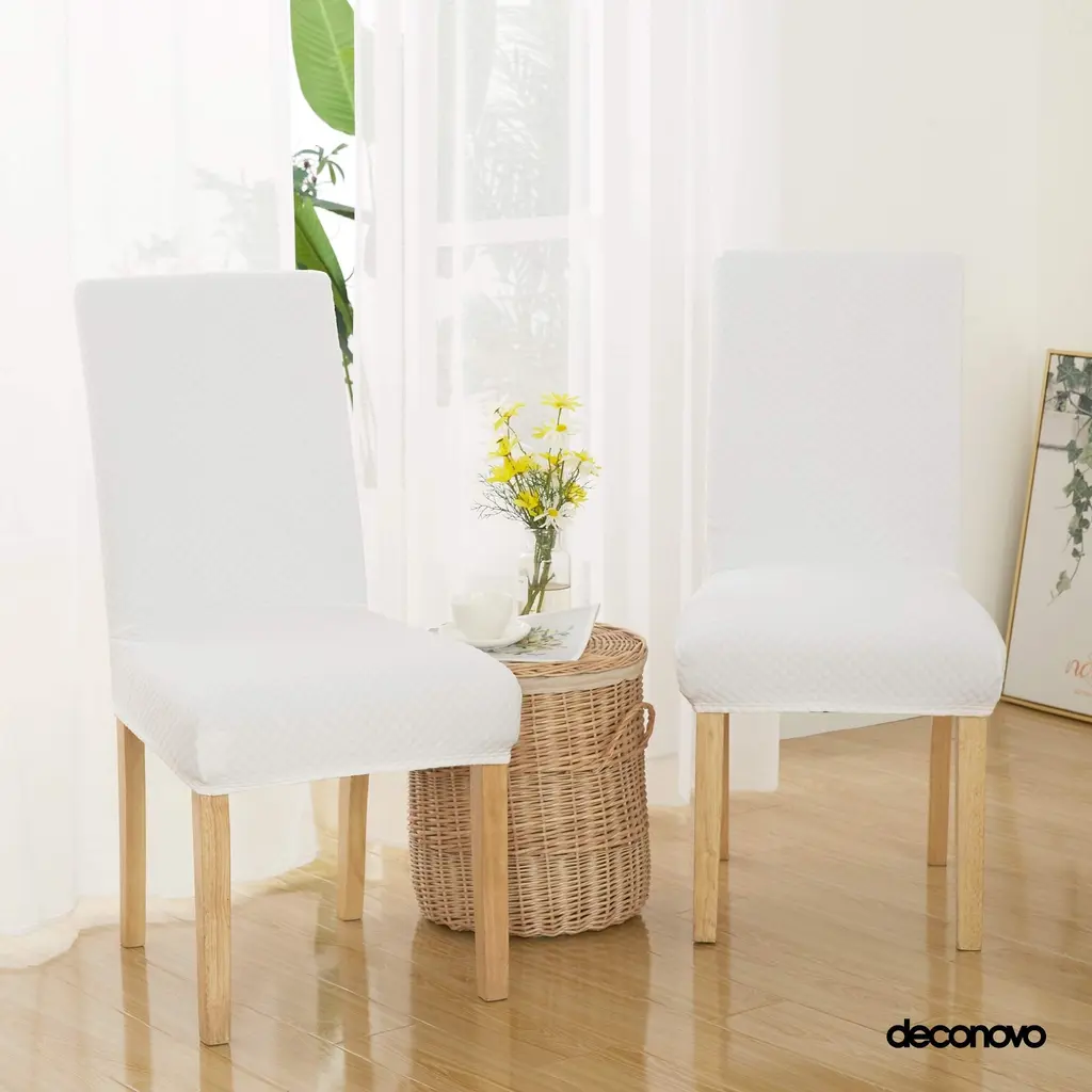 2 Pieces Modern Stretch Jacquard Dots Chair Covers, Slipcovers For Dining Room - 18x18x24 Inch - White