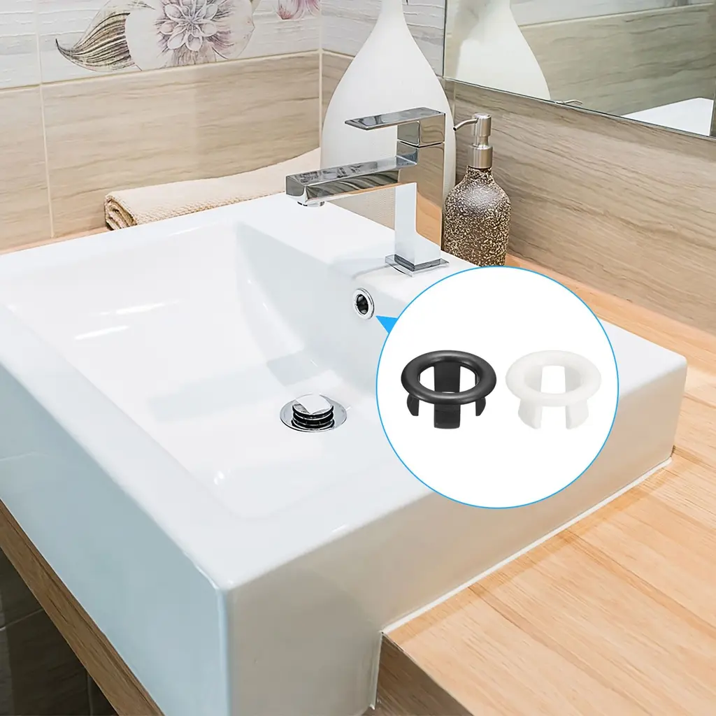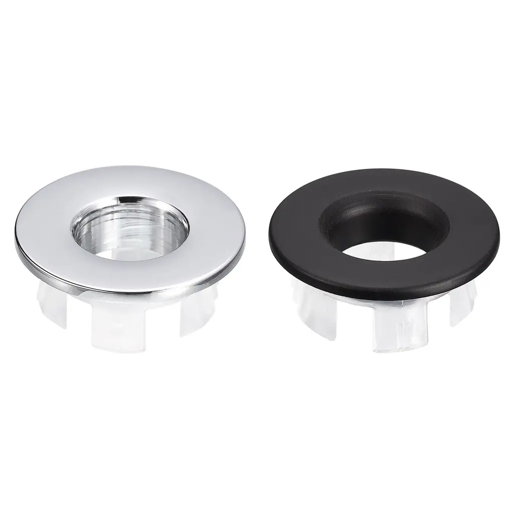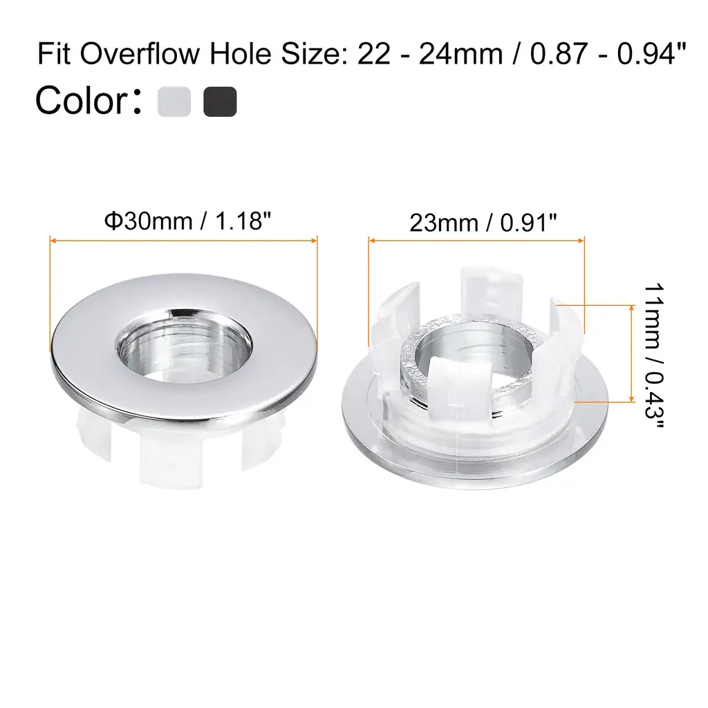 2Pcs 23mm Sink Trim Overflow Cover Ring Round Hole Insert In Cap, Silver/black - Silver/black