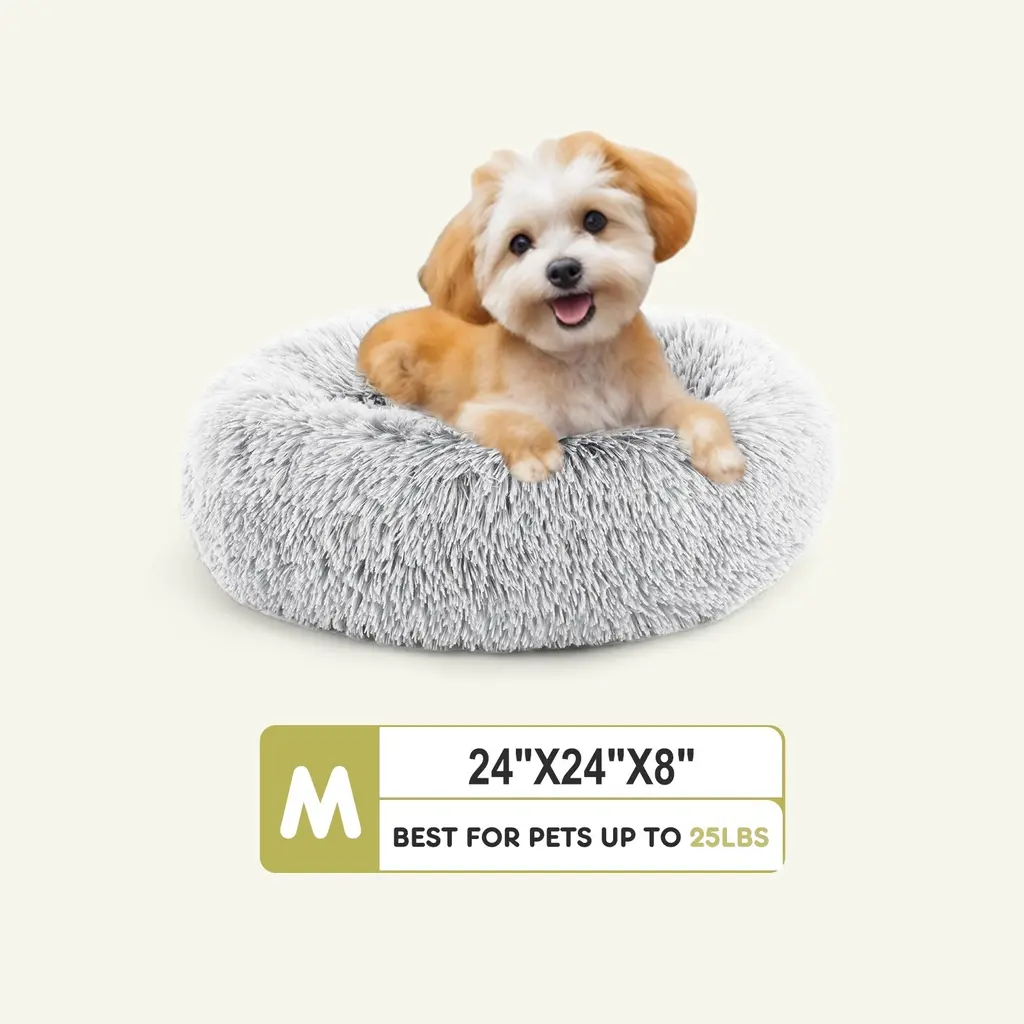 30-Inch Round Dog Bed, Washable Removable Cover, Anti-Slip Bottom, Supportive Foam Mat For Indoors - M - Grey