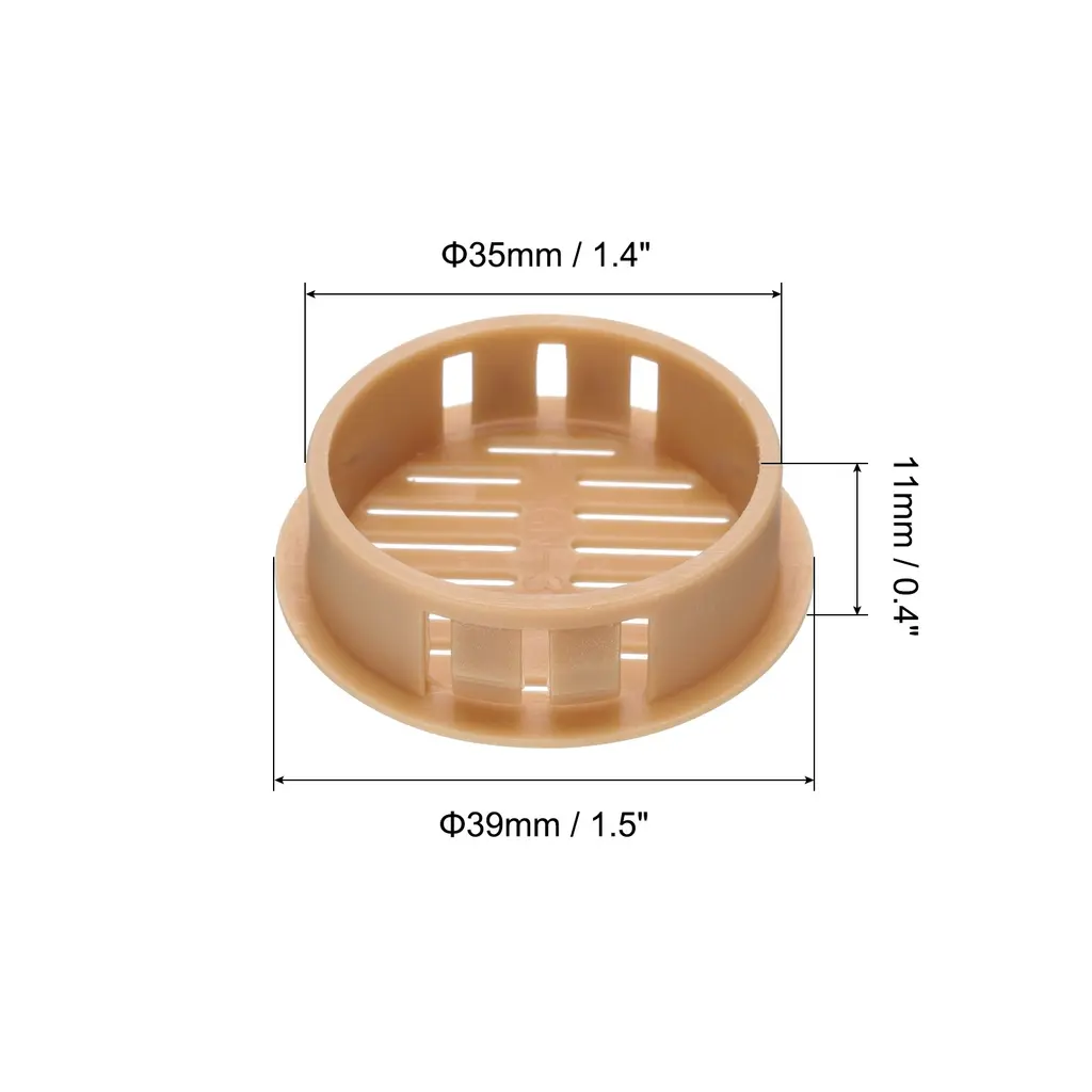 Description:Material: This air vent is made of ABS plastic, durable, impact-resistant, scratch-resistant, moisture-resistant, corrosion-resistant, nontoxic and odorless, not only has oxidation resistance but also has a more beautiful installation effect. No screws included.Advanced Advantage: The ABS plastic air vent is sturdy but lightweight, has smooth edges, simpler and safer for installation.ABS plastic mesh design, the air flows easily, and the small strip exhaust port can block dust, not easy to block.Wide Application: This air vent is used in offices, meeting rooms, auditoriums, music halls, bedrooms, kitchens, bathrooms, storage rooms and anywhere else air needs to move.How to Install: It is recommended to wear gloves during installation when installing push the cover into the mounting hole, it will snap firmly and not easily loosen.Note: Before purchasing these round vent covers, carefully measure the diameter of the mounting hole. If the mounting hole is too large or too small, the installation of these round soffit vents will fail.Specification:Item Weight: 80g/2.82 OzPackage Dimensions:Outside Diameter: 35mm / 1.4in;Bottom Diameter: 39mm / 1.5in; Mounting Height: 11mm / 0.4in; Color: WhiteMaterial: ABS PlasticPackage Content: 30Pcs of Round Soffit Vents
