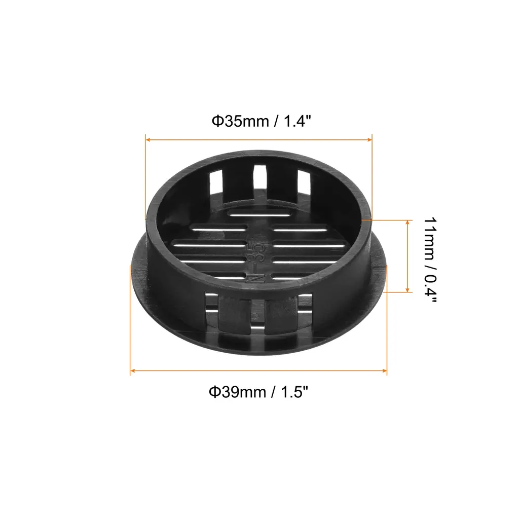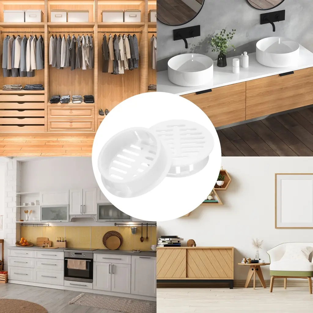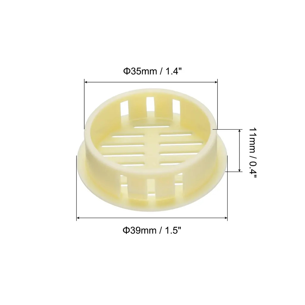 Description:Material: This air vent is made of ABS plastic, durable, impact-resistant, scratch-resistant, moisture-resistant, corrosion-resistant, nontoxic and odorless, not only has oxidation resistance but also has a more beautiful installation effect. No screws included.Advanced Advantage: The ABS plastic air vent is sturdy but lightweight, has smooth edges, simpler and safer for installation.ABS plastic mesh design, the air flows easily, and the small strip exhaust port can block dust, not easy to block.Wide Application: This air vent is used in offices, meeting rooms, auditoriums, music halls, bedrooms, kitchens, bathrooms, storage rooms and anywhere else air needs to move.How to Install: It is recommended to wear gloves during installation when installing push the cover into the mounting hole, it will snap firmly and not easily loosen.Note: Before purchasing these round vent covers, carefully measure the diameter of the mounting hole. If the mounting hole is too large or too small, the installation of these round soffit vents will fail.Specification:Item Weight: 80g/2.82 OzPackage Dimensions:Outside Diameter: 35mm / 1.4in;Bottom Diameter: 39mm / 1.5in; Mounting Height: 11mm / 0.4in; Color: WhiteMaterial: ABS PlasticPackage Content: 30Pcs of Round Soffit Vents