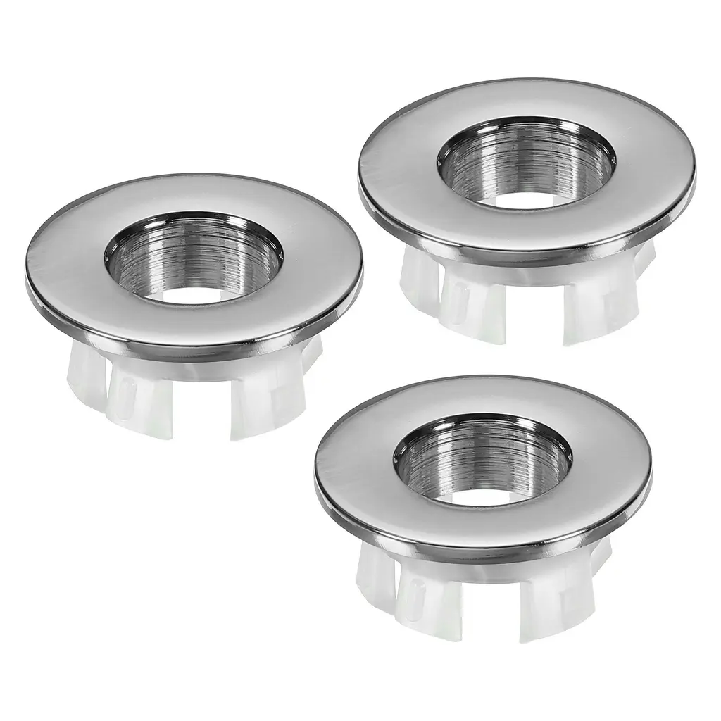 3Pcs Overflow Ring, Sink Round Ring Cover Basin Trim For Bathroom, Silver - Silver