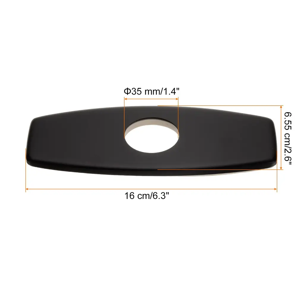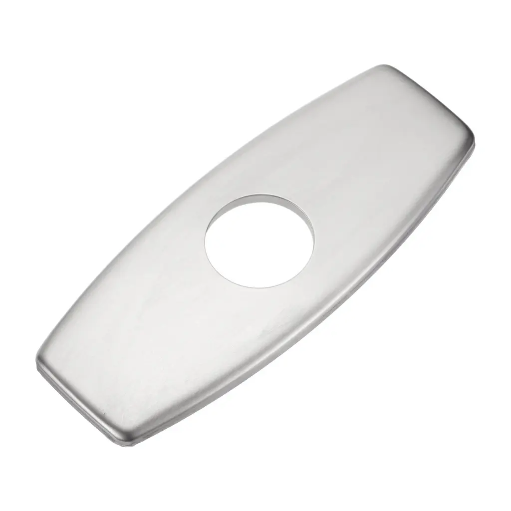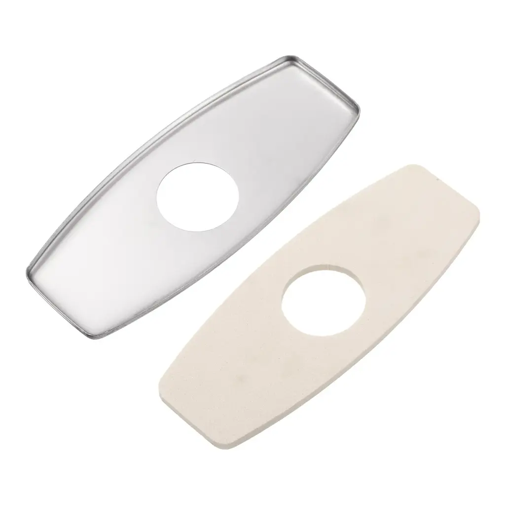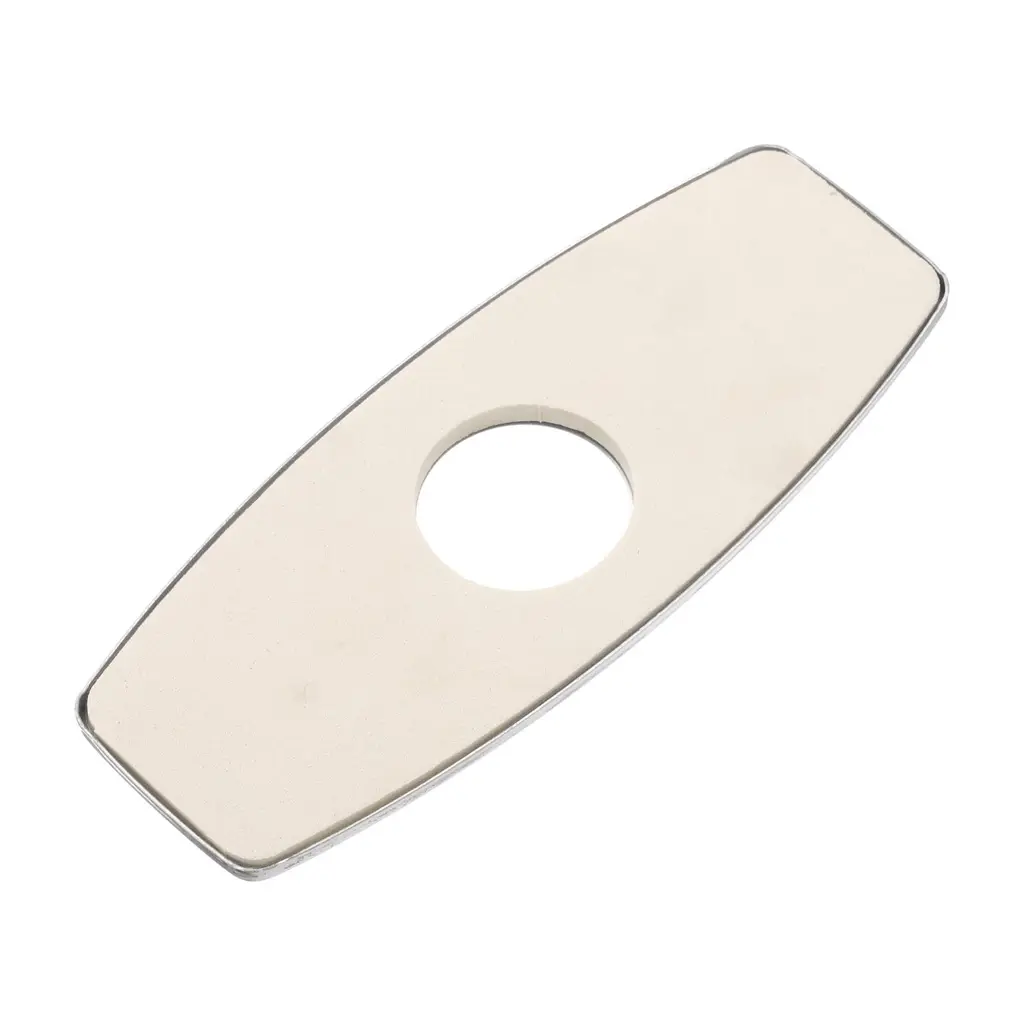 Advantage:The hole cover plate is made of stainless steel, with surface treatment, resistant to scratches, corrosion, and tarnishing.Designed with a thick white foam pad under the case can effectively prevent water from leaking through the sink hole.The hole cover allows a single-hole faucet to be installed on 3 3-hole sinks and covers the unused outer holes of the bathroom sink.Just put the cover plate under the faucet, then tighten the faucet, It can be cleaned only with a soft cloth, saving you time.Keep your kitchen faucet clean and tidy, sink hole cover can match most sinks, such as stainless steel/ceramic kitchen sink, and bathroom sink.Specification:Material: Stainless steelColor: Brushed SilverSize: 16 cm x 6.6 cm/6.3 inch x 2.6 inch (L*W)Thickness: 6 mm/0.26 inchHole Diameter: 35 mm/1.4 inchPackage Included: 1pcs x faucet cover plate