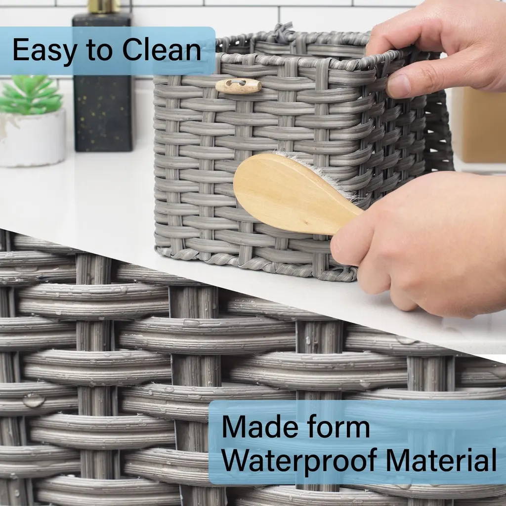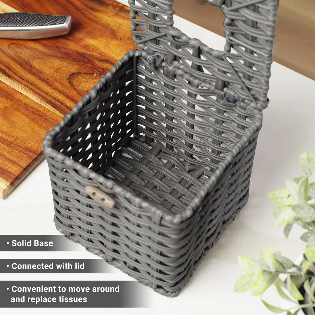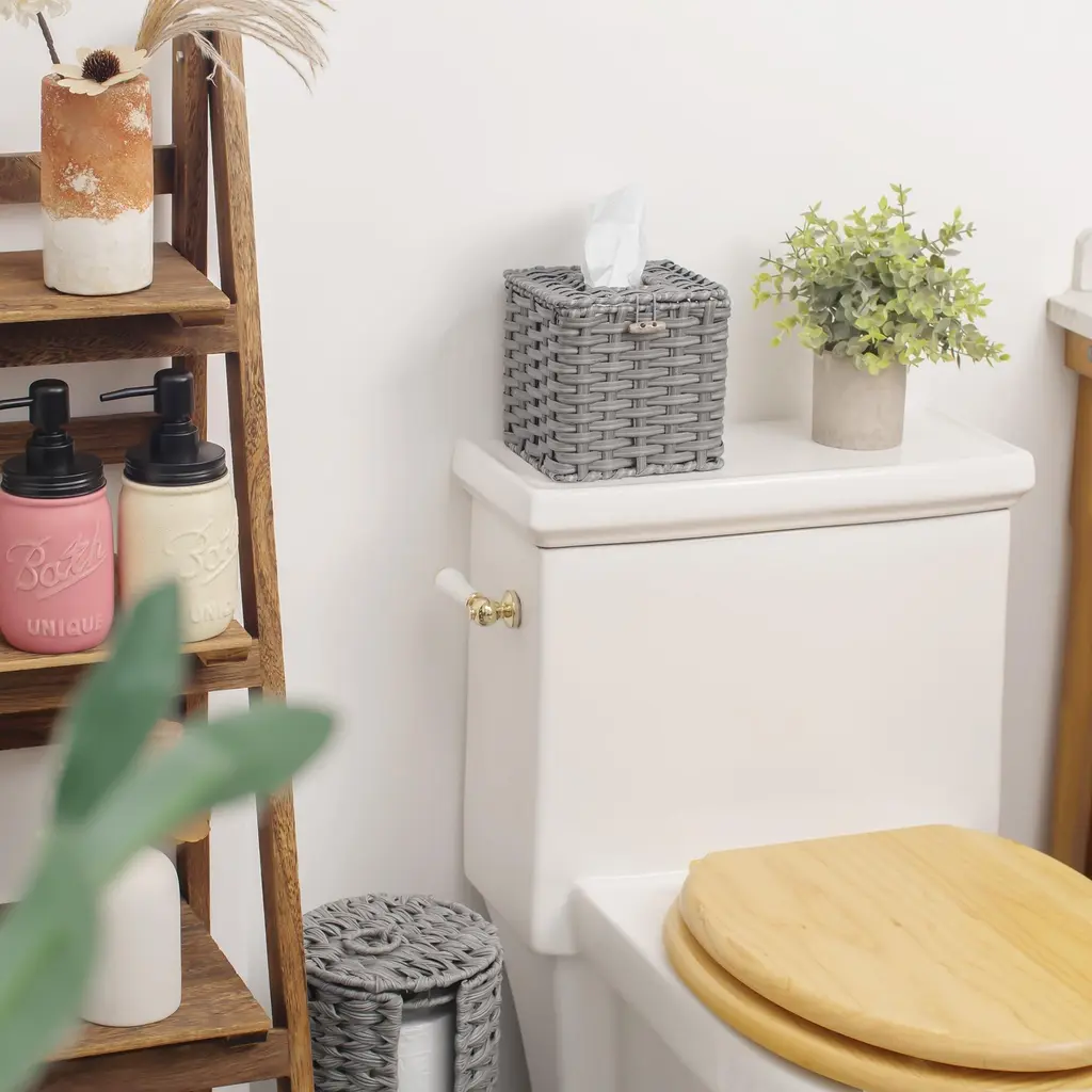 Tired of mismatched tissue boxes disturbing your decor? This synthetic rattan tissue box cover is a great choice for those who want to add a touch of natural style to their home decor. Blending functionality with a stylish design, the bathroom tissue holder is easy to refill and prevents wastage thanks to the toggle button and lid. The bathroom storage basket is durably constructed and easy to clean and can be used in any room. Available in three color choices, this rattan tissue box cover holds most of the standard cube-sized tissue boxes.We Want to Hear From You!Shopping should be happy and satisfying! We want everything to be perfect for you. Should you have any problems with our products or tracking the order, please feel free to contact us through messages or email at cs@wellzone.life We have customer services stand by 24/7.
