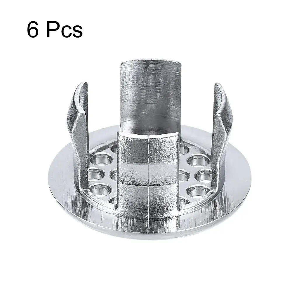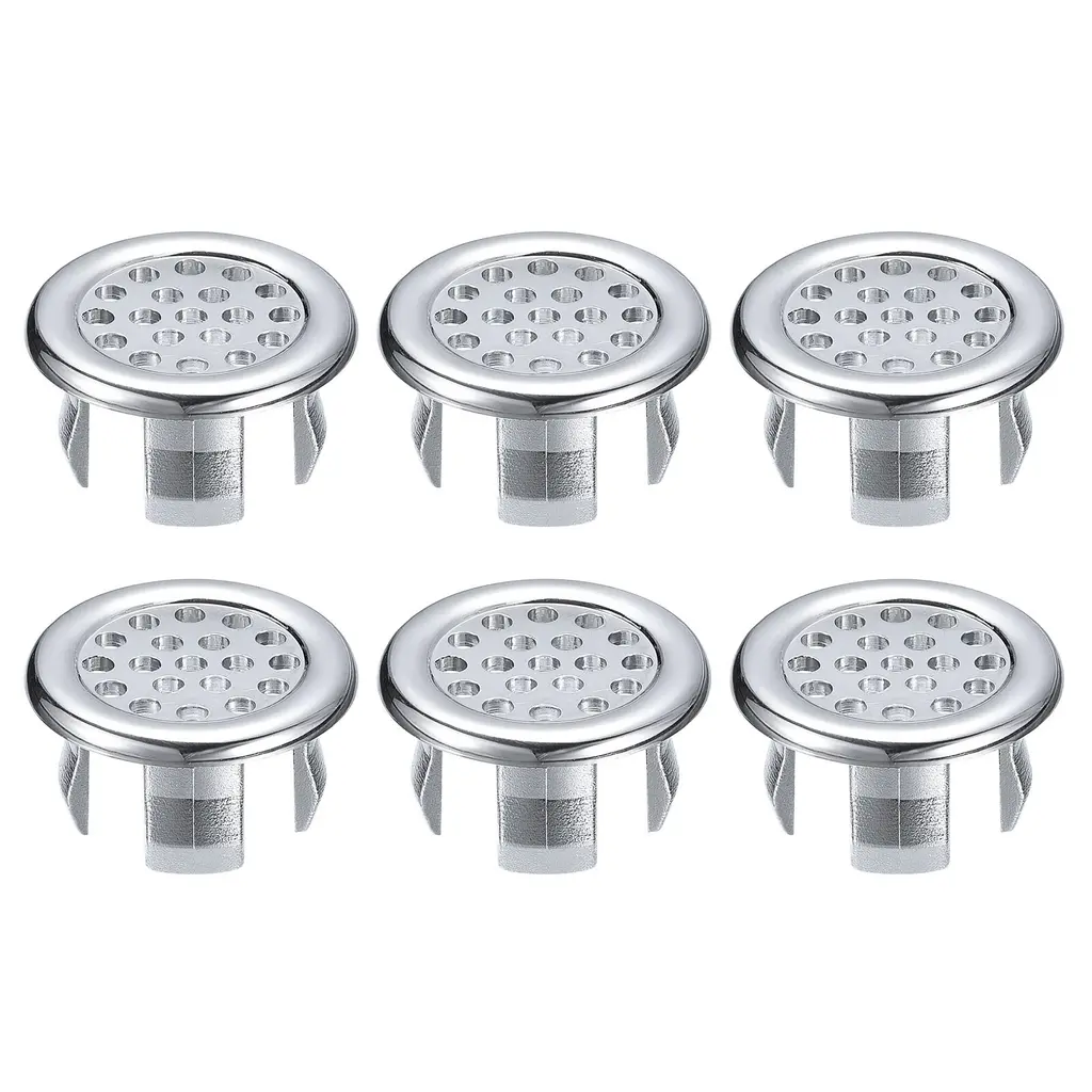 6Pcs 24mm Sink Trim Overflow Cover Ring Hole Insert In Round Caps, Silver - Silver
