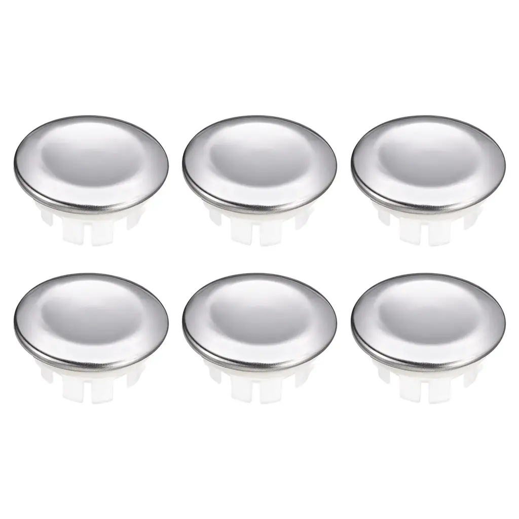 6Pcs Sink Trim Overflow Cover Ring Double Layer Metal Hole Insert In Caps Silver - Silver
