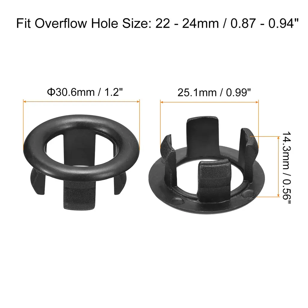Description:Made of ABS plastic material that is sturdy and durable, has good wear and corrosion resistance. With an electroplate finish that ensures surface gloss and brightness, can be used for a long time without fading.The sink trim overflow covers look stylish and modern, can decorate the overflow hole but not clog it, and makes your sink look cleaner and tidy. Not easily fall off after installation and won't scratch the surface of the sink.Installation is quick and easy, before installing, measure the hole size, then simply push and snap into desired position. The installation can be finished in a few minutes, no tools are required.The sink overflow rings are widely used in most types of wash basins, suitable for bathtubs, homes, gardens, kitchens, bathrooms, shopping malls, hotels, factories, etc.Specification:Material: ABSFit Overflow Hole Size: 22 - 24mm/0.87 - 0.94inchHole Dia.: 25.1mm/0.99inchTotal Size: 30.6 x 14.3mm/1.2 x 0.56inch(D*H)Package Content:8pcs x Sink Trim Overflow Cover