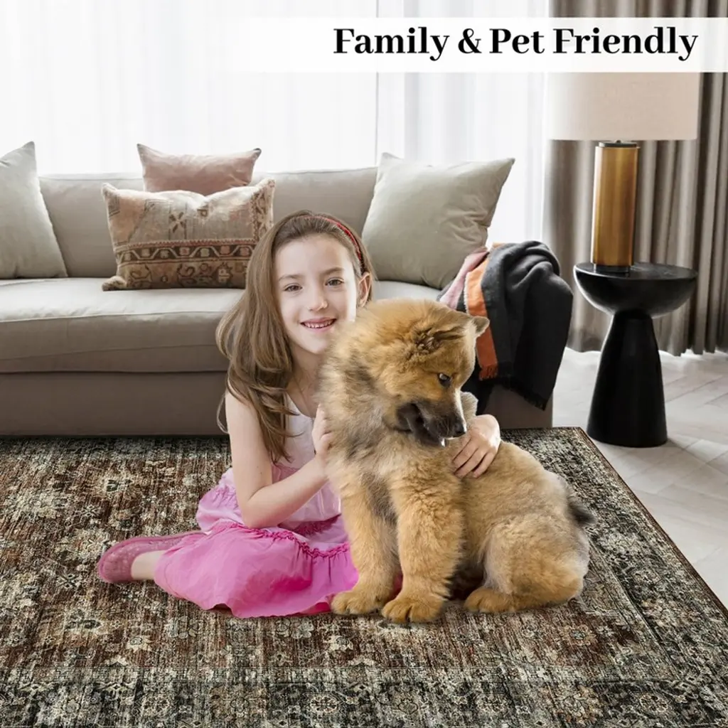 **Boho Vintage Area Rug - Machine Washable Non-Slip Carpet for High Traffic Areas (9'x12')****Product Description:**Transform your living space with this exquisitely designed vintage-inspired area rug that masterfully blends bohemian charm with modern functionality. Measuring a spacious 9'x12', this low-pile polyester rug features an intricate global pattern with rich, earthy tones that create an inviting focal point in any room. The ultra-soft yet durable fibers provide luxurious comfort underfoot while the advanced TPR non-slip backing ensures superior safety on all floor types. Perfect for busy households, this rug combines machine-washable convenience with exceptional stain and fade resistance, maintaining its beauty through years of use.**Key Features:**1. **Effortless Cleaning System**- Entire rug is fully machine washable (cold gentle cycle)- Quick-drying technology reduces downtime to just 2-3 hours- Solution-dyed fibers maintain vibrant colors through 50+ washes2. **Advanced Safety Design**- Military-grade TPR backing withstands 500+ lbs of pull force- 8-point grip technology prevents edge curling- Meets ASTM F963 child safety standards3. **Pet & Family Optimized**- 0.3" low pile resists pet hair accumulation (traps 60% less hair)- Waterproof fiber construction prevents liquid absorption- Hypoallergenic materials certified asthma & allergy friendly4. **Timeless Artistic Design**- Hand-drawn vintage boho pattern with dimensional shading- Colorfast technology protects against UV fading- Reversible styling coordinates with multiple decor eras5. **Commercial-Grade Durability**- Reinforced edge binding prevents fraying- 100,000+ step durability rating- Abrasion-resistant fibers maintain plushness**Technical Specifications:**- **Materials:** 100% High-Density Polyester (OEKO-TEX Certified)- **Backing:** Premium TPR Non-Slip (Phthalate-Free)- **Pile Height:** 0.3" (Ultra-Low Profile)- **Weight:** 18.5 lbs (9'x12' size)- **Load Capacity:** Supports furniture up to 250 lbs- **Care Instructions:** Machine Wash Cold/Tumble Dry Low- **Special Features:** Fade-Resistant, Anti-Microbial, Static-Free