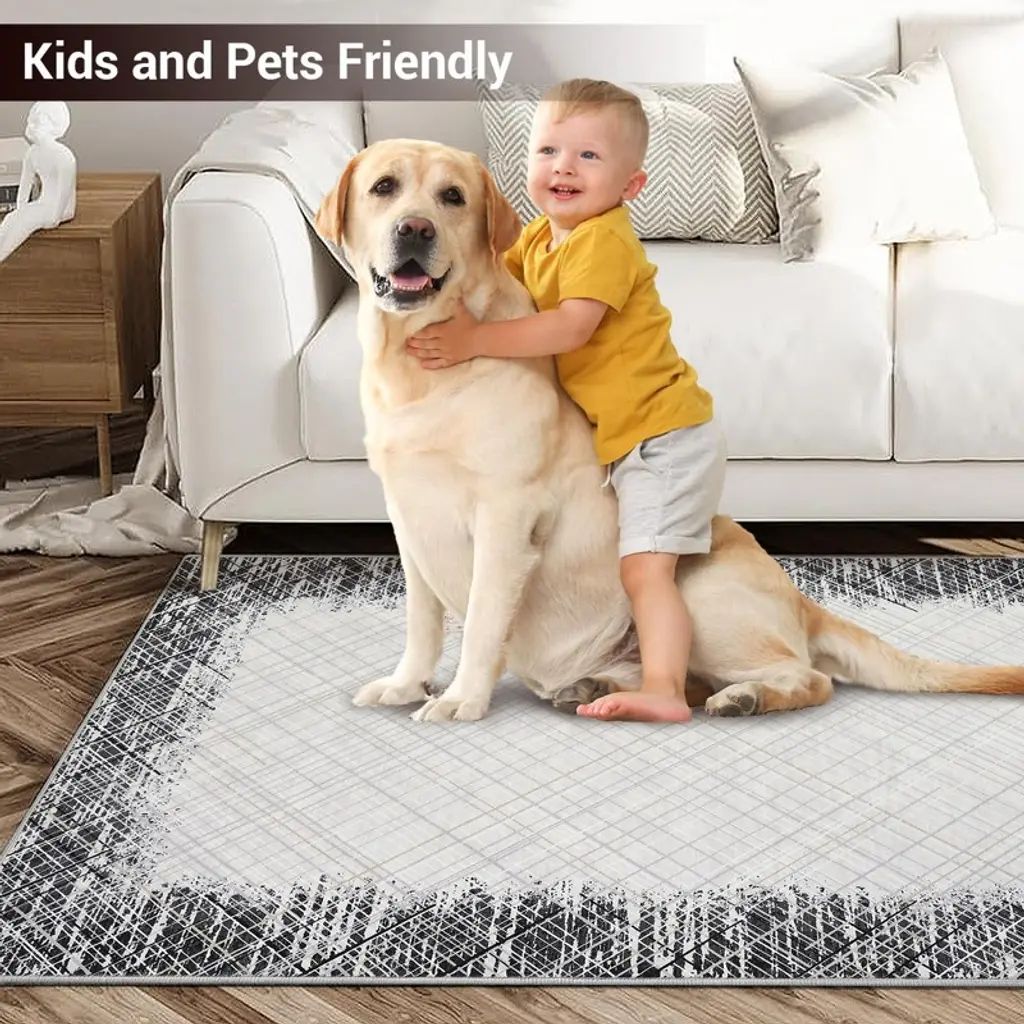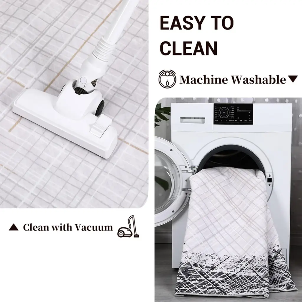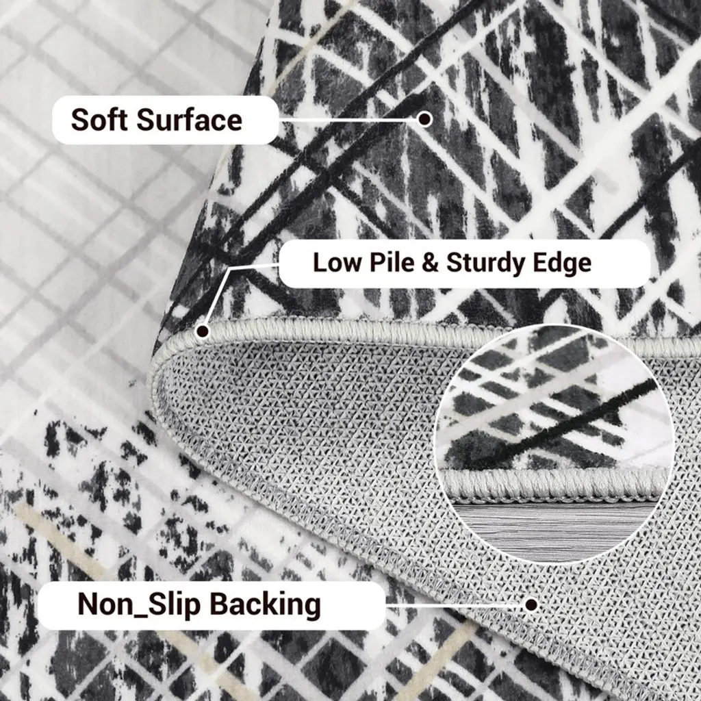 1.Modern Abstract Design for Elevated Style Chic geometric/abstract pattern in versatile gray tones Artistic yet neutral¡ªcomplements contemporary, minimalist, and transitional decor Adds visual depth to living rooms, bedrooms, and dining spaces 2.Ultra-Soft & Safe Low-Profile Construction Plush, skin-friendly fibers for barefoot comfort 0.25" low pile prevents tripping and fits seamlessly under furniture Non-slip TPR backing grips floors securely on hardwood, tile, or laminate 3.Machine Washable & Stain Resistant Easy-care polyester withstands regular machine washing (cold gentle cycle) Spill-resistant surface repels liquids for quick wipe-ups Air dry only¡ªmaintains color vibrancy and texture wash after wash 4.Kid & Pet Friendly Durability Gentle on paws and play¡ªideal for family rooms and pet areas Scratch-resistant fibers withstand active households Hypoallergenic & odor-free for healthier indoor air quality 5.Space-Saving Foldable Design Ultra-thin 0.25" profile folds compactly for easy storage Lightweight (8 lbs)¡ªmove between rooms or apartments effortlessly
