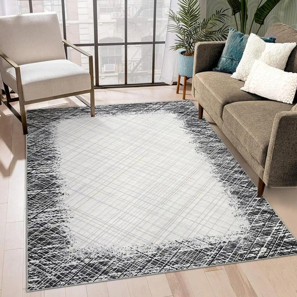 9X12 Rugs Washable Non-slip - Large Modern Abstract Area Rug For Living Room, Ultra Soft Low Pile Carpet, Stain Resistant Foldable Floor Cover Gray