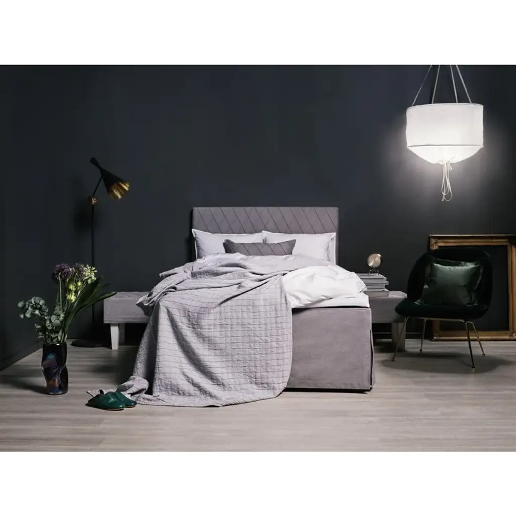 Matri’s Aava bed cover is made of embossed, jacquard-woven cotton decorated with a symmetrical square pattern. The combination is both refined and relaxed at the same time. The Aava collection features bedspreads in calm, refined shades that go perfectly together with Scandinavian interiors and also balance stronger colors in a harmonious way.