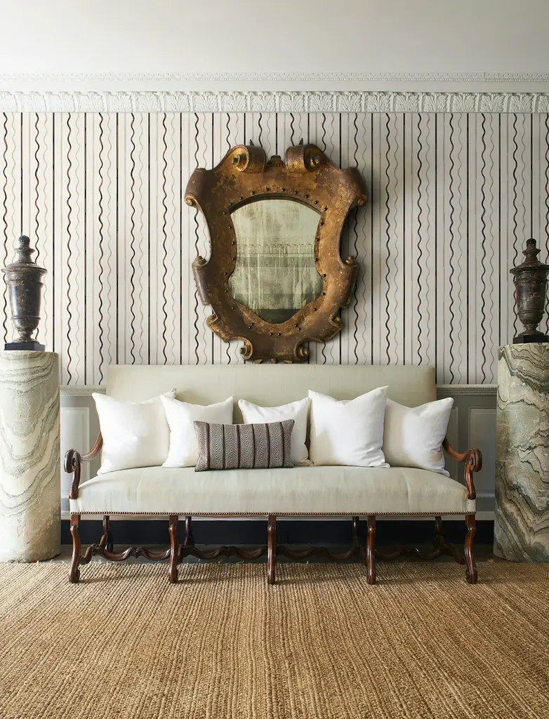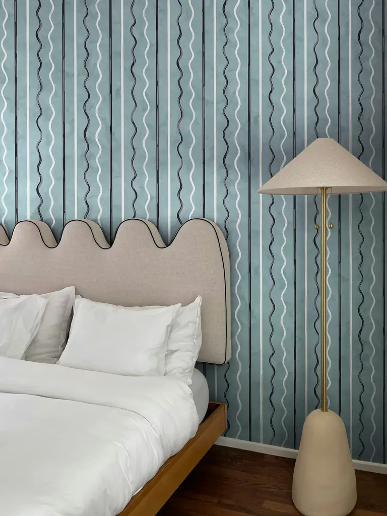 Coupled stripes of highlight and shadow playfully mingle in AFFOGATO. Based on hand painted stripes, swirling line work creates a trompe-l’oeil effect that echoes a charming golden hour at a European cafe. This charismatic small scale design will add depth and dimension to any space. Backdrop wallcoverings are made from hand-crafted artwork and printed on a non-woven ground with a subtle fibrous texture. Designed in Los Angeles and expertly printed in Brooklyn. Backdrop is proudly part of the heritage design house F. Schumacher & Co.
