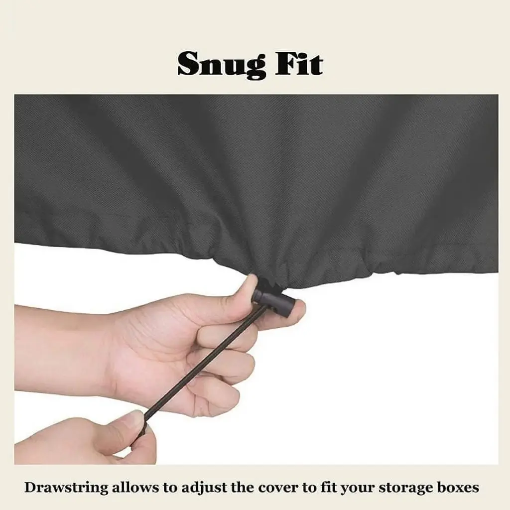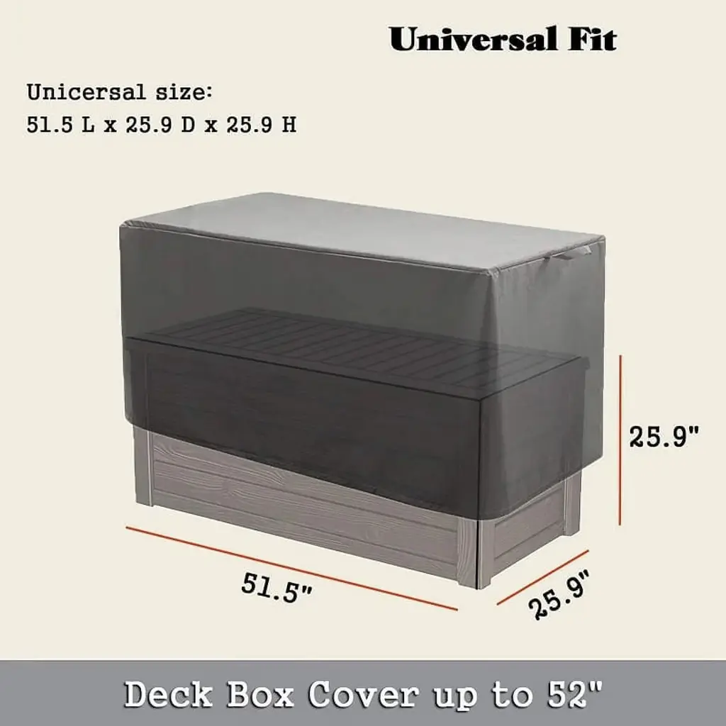 Keep your patio storage box protected from sun, rain, dust, and snow with the Akefit 52-inch deck box cover. Crafted from heavy-duty 600D PVC-coated fabric, it offers superior outdoor protection and long-lasting durability. The top seams are taped for added waterproof performance. Two strong side handles are stitched securely for easy removal. A drawstring bottom and corner buckle straps keep the cover firmly in place. Comes with a matching drawstring storage bag for neat and convenient storage when not in use.