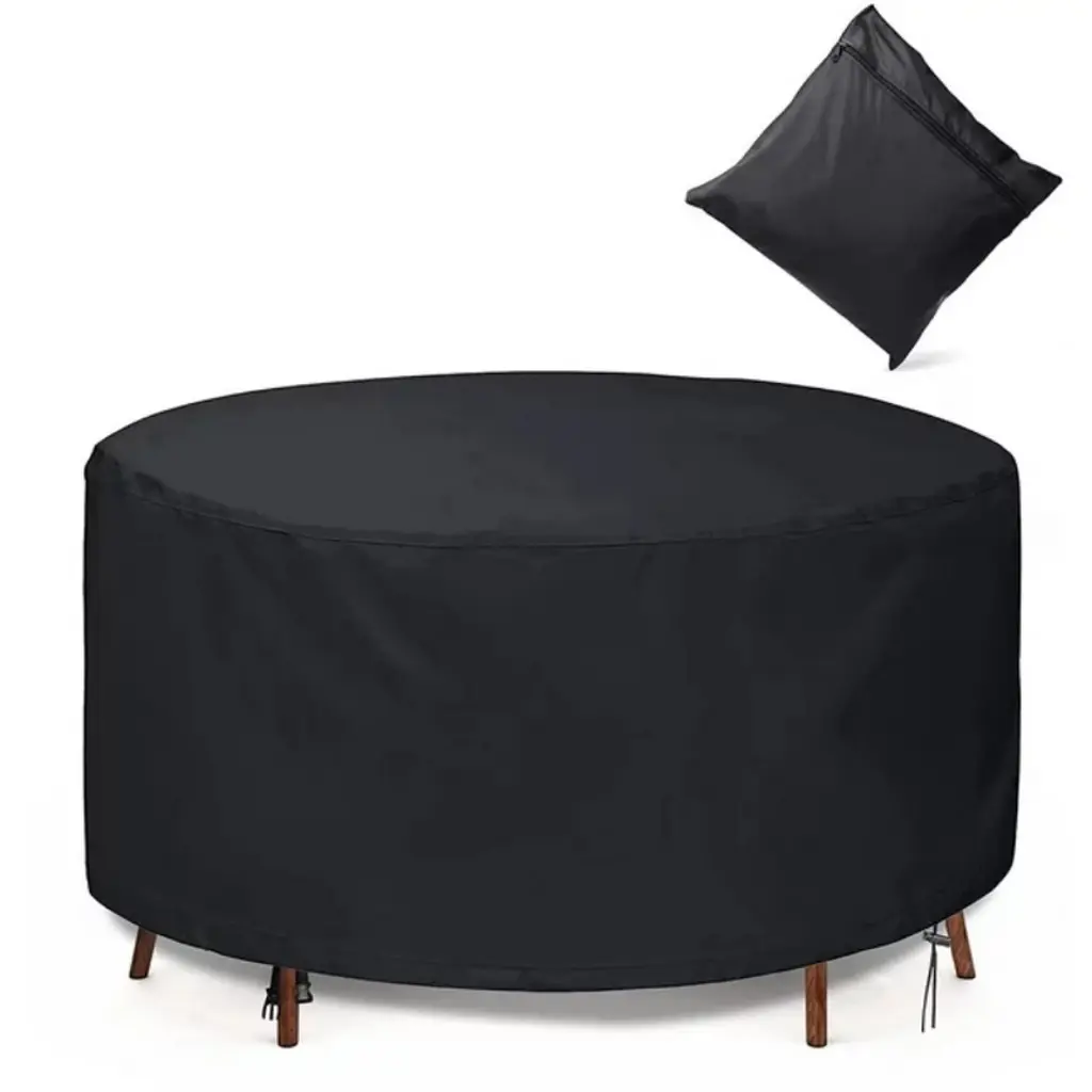 Protect your outdoor round table with the Akefit heavy-duty cover, made of 400D Oxford fabric with PU coating. Designed to withstand rain, sun, and snow, it features dual mesh vents for airflow and four buckle straps for wind resistance. A drawstring hem provides a custom fit, while sturdy handles make it easy to remove. Clear mesh windows add visibility and ventilation. Each cover comes with a zippered storage bag and folds compactly for seasonal storage. Compatible with round tables in multiple sizes, this cover keeps your furniture looking new year-round.